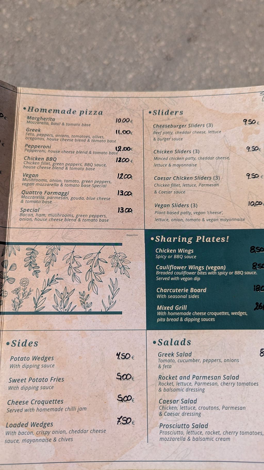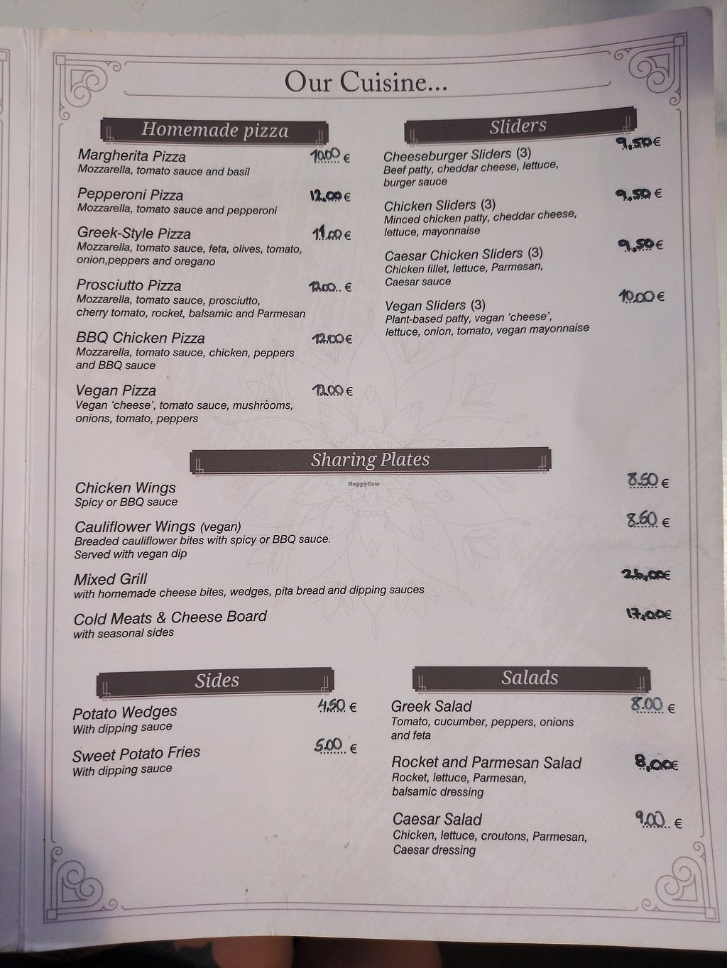 Options include a vegan "cheese" and tomato toastie for only €2.50! We had the cauli wings, vegan sliders and vegan pizza. All great prices, and we sat by the canal! The canal is a bit smelly but gorgeous. Servers were great, fast service. Food was tasty, large portions