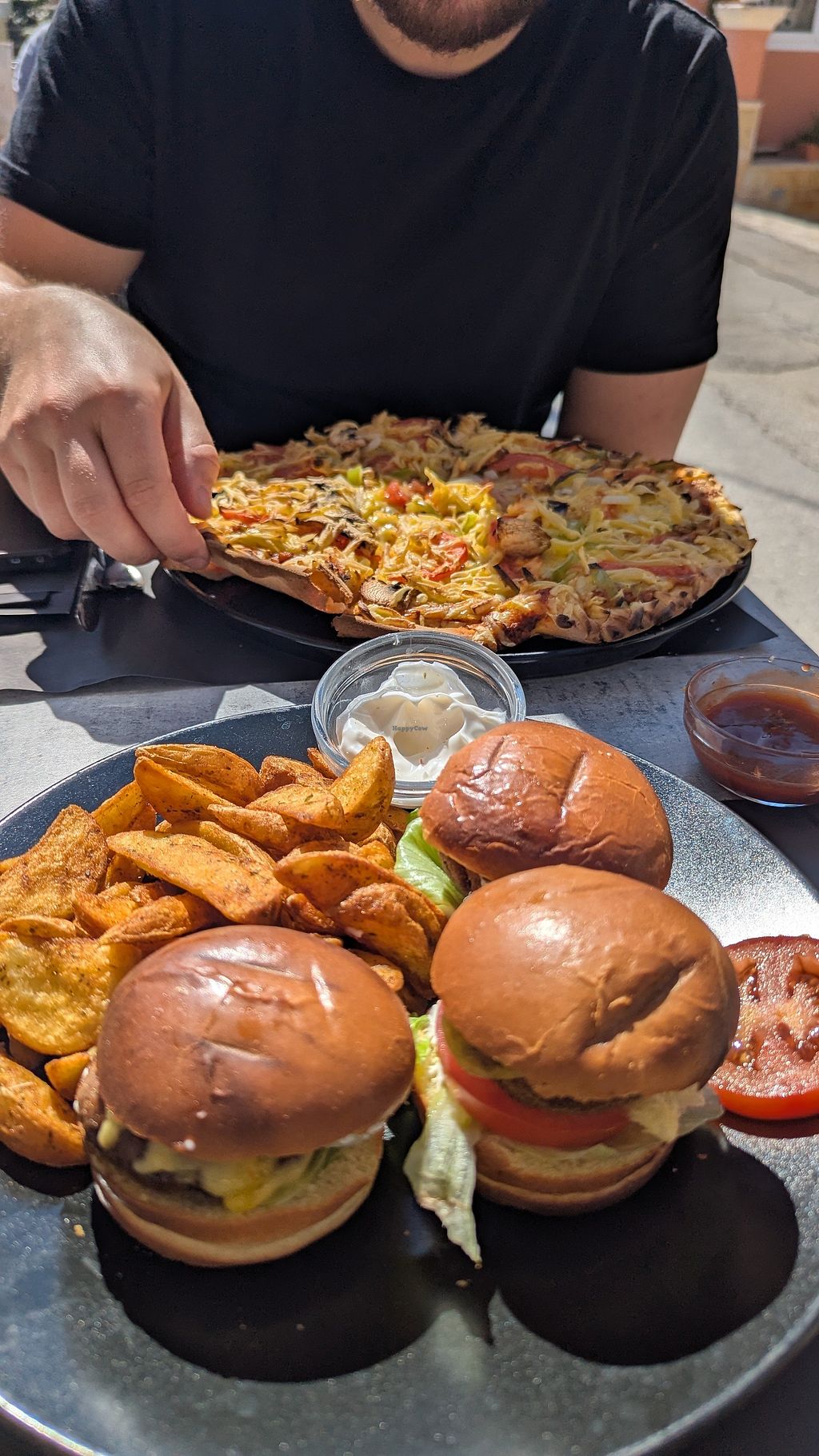 We had the 3 vegan dishes. The vegan Pizza, vegan slides (Mini Burger) and cauliflower Wings. The Pizza was okay. Burger were good. Wings were so delicious.