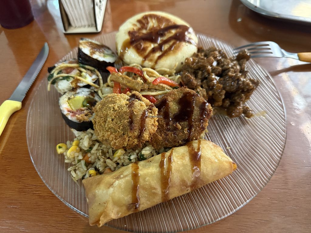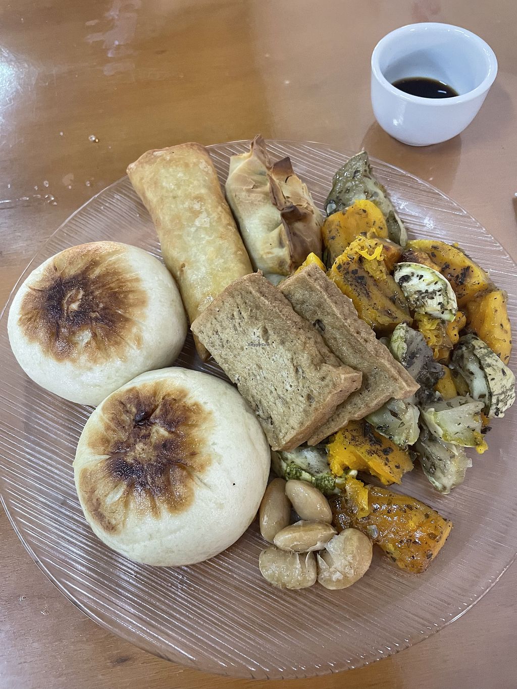 All vegan : Chinese bread/bun, spring rool, tofu empanada, tofu, veggi…