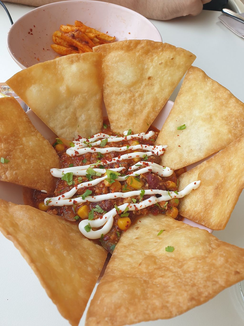 I had a burger with chips and it was delicious. Service is very good and friendly. It has a nice chilled family vibe. Desert was delicious too. The only thing I would improve is the table and chairs outside which were plastic and looked a bit cheap and the table cloths where a bit dirty and mouldy.