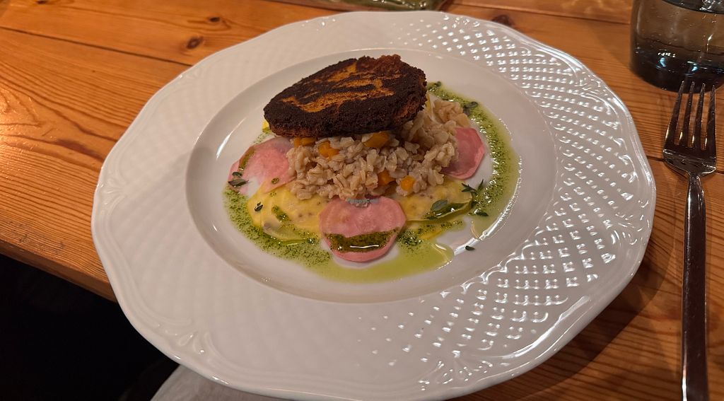 Nice to find a restaurant with vegan options in the middle of the woods. I had the selfmade sunflower seed tofu with seasonal root vegetables. It tasted great a lot of different flavours i liked. The only thing i would say is that it wasn’t enough.