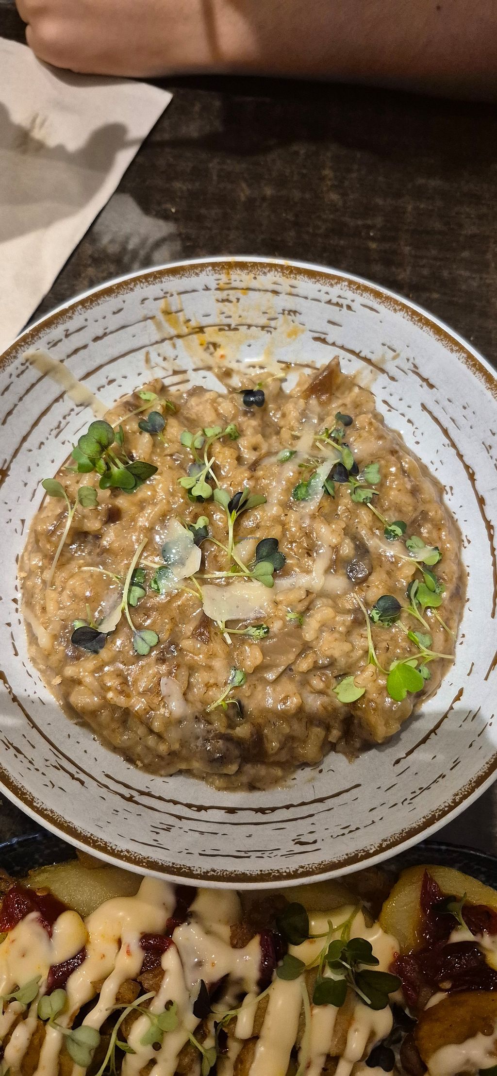 Comimos estupendamente. Increíble el arroz caldoso vegano con champis y los espaguetis con setas👍. Además tenían helado vegano😋
