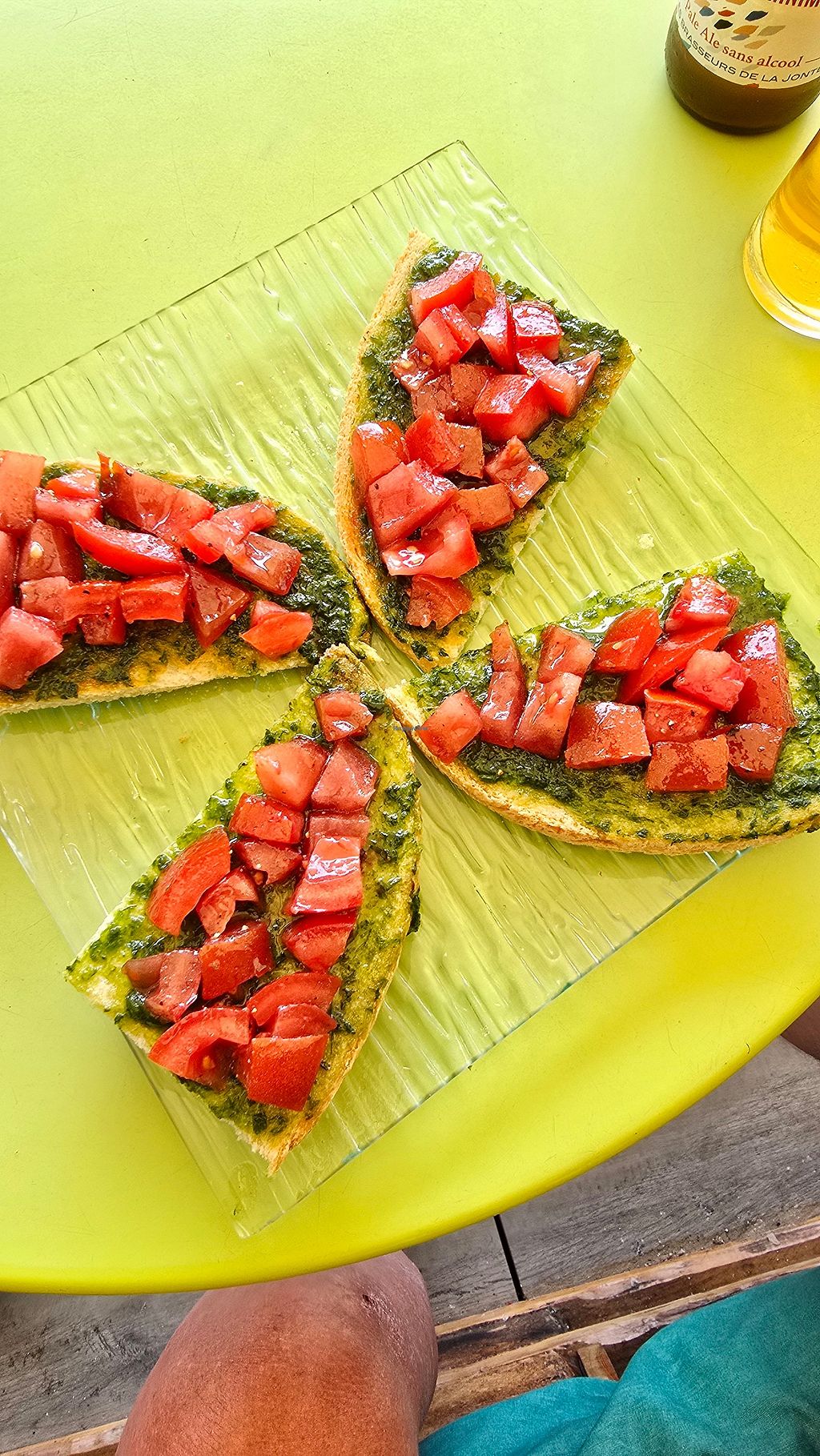 So this was a pleasant surprise. Although not that much, it tasted really good. 3 sorts of falafels (we ordered two of these) and bruscetta with tomato.