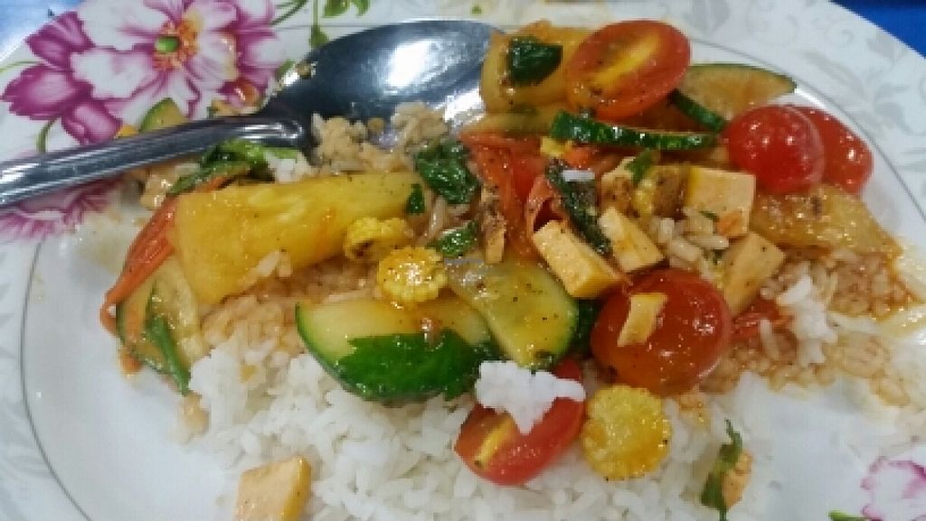 after visiting Saturday walking street called into the Veg Stall ... I had take away fried rice with tofu (50 baht) ... the food was cooked quickly however it tasted bland