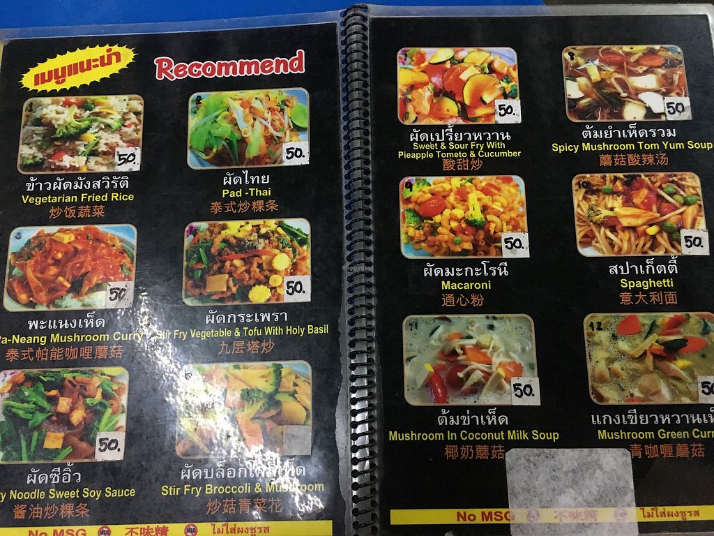 I went there almost every night. My favorite dish is stir fry vegetables & tofu with holy basil. It is sooo good. I also recommend you to try noodle soup. Everything is 50 baht.
