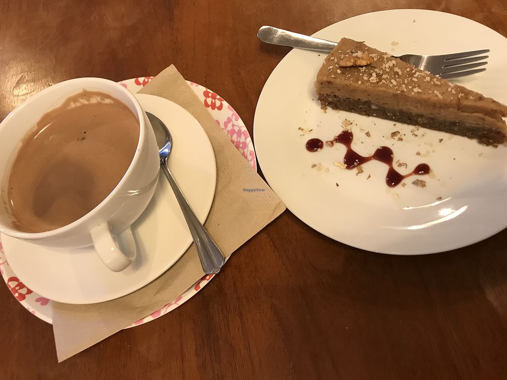 Hot chocolate with coconut milk & raw vegan cake