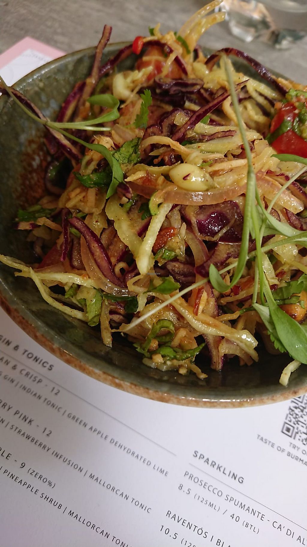 I really enjoyed trying new (to me) dishes here which aren't widely served in London. The flakey paratha had a generous, earthy filling. For the uninitiated like me, tofu nway is a rich silken sauce made from split peas rather than soy mixed with rice noodles and topped with - among other delights - seasoned pea protein chunks to replace the traditional chicken. Think Burmese mac and cheese! The savoury lentil chow chow was set off perfectly with sweet chilli jam. The pickled cucumber delivered on the promised chilli 🔥