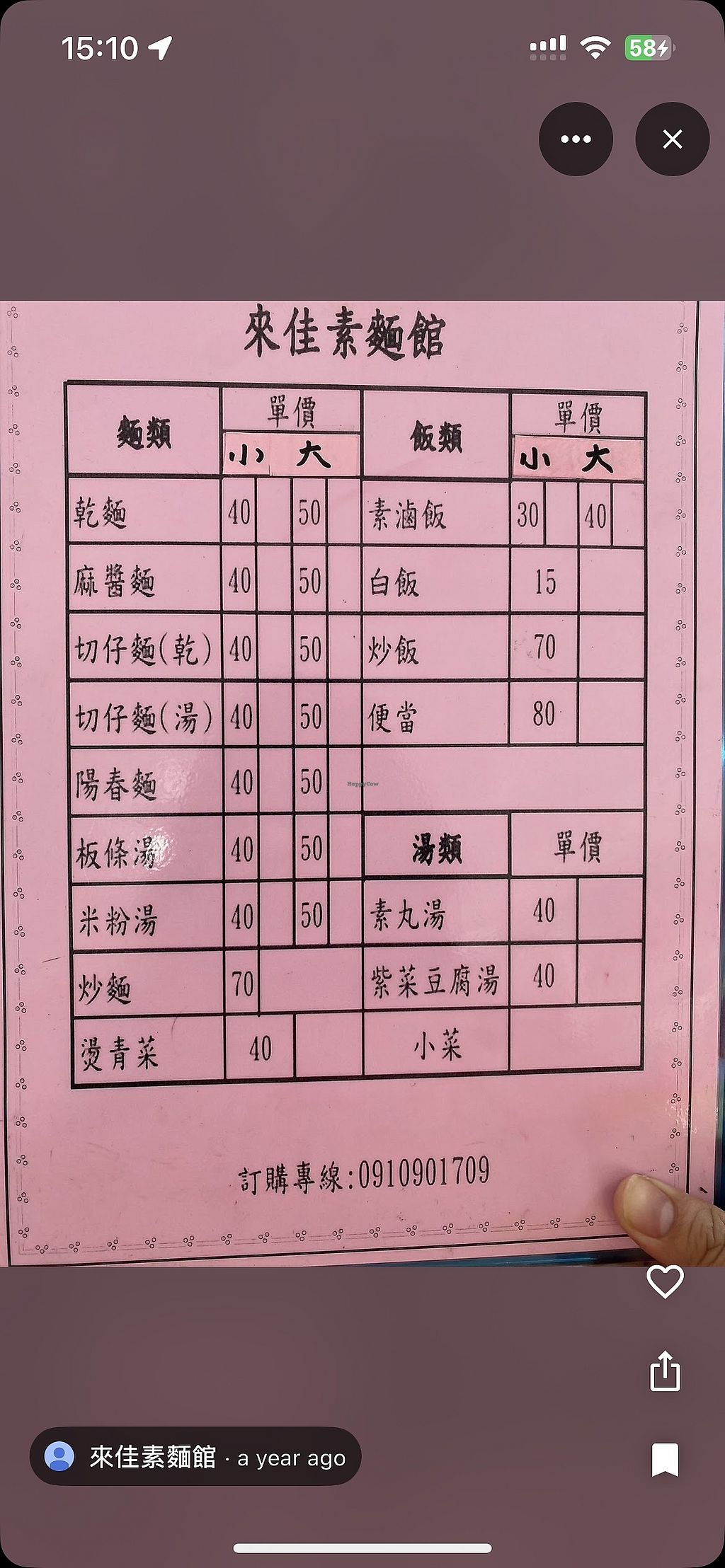 The lady running this restaurant is so lovely. We came here a few times after a morning surf and the food was perfect. There’s an option for 80NTD where you choose 5 sides (veg and tofu) 1 main tofu dish and rice. We also tried the sesame noodles which were creamy and flavourful.