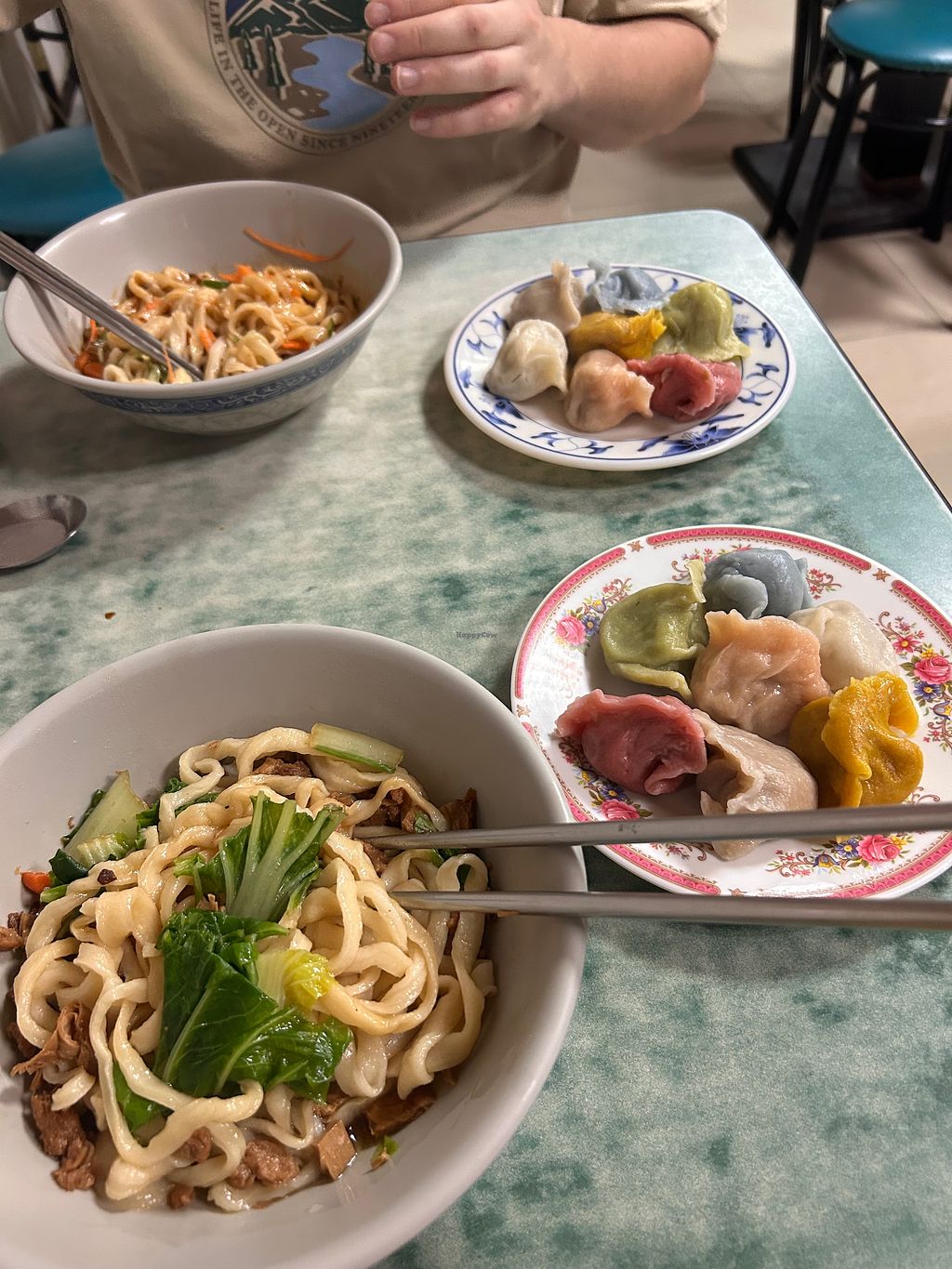 On my first day in Taipei, I decided to try this place out, and it was a great choice! I had a vegetable noodle soup and tried one of each of the dumplings they offered. The lady, who I believe is also the owner, spoke English, so it was easy to communicate and she explained very well what they offered and provided recommendations. They also offered side dishes which seemed to have some tofu and mushroom that I tried, and it went well with my soup. I particularly liked how the coloring of the dumplings were from natural vegetables.