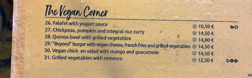 Serves meat, vegan options available. Hotel restaurant serving a menu of local cuisine. Vegan options include falafel, quinoa bowl, and chickpea curry. Open Mon-Sun 13:00-15:00, 19:30-21:30.
