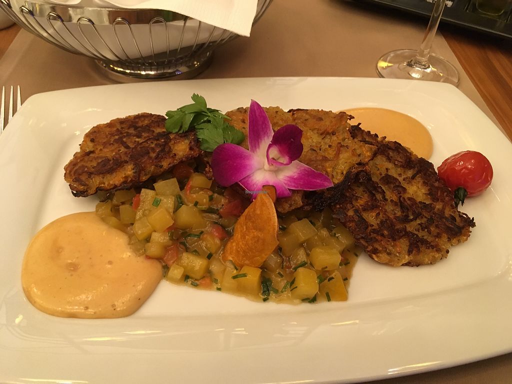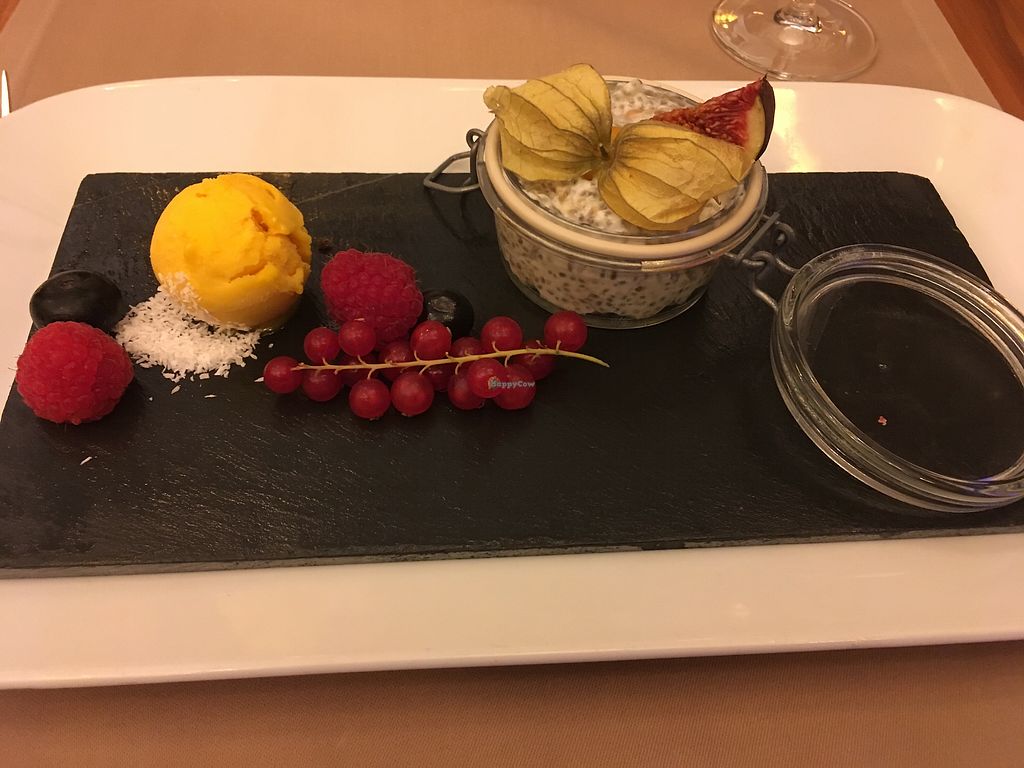 The first time we stayed here, the food was great and there were a quite a few vegan options. We had ordered breakfast and diner (Halbpension) in advance. One dinner was a delicious three course menu with beluga lentils and eggplant and the highlight of the breakfast were the several vegan „puddings“ like chia pudding. The second time we went, there were no options for breakfast or dinner and the staff seemed a bit challenged by the idea of vegan, but did manage to find something. Note that you can only eat here if you are a hotel guest.