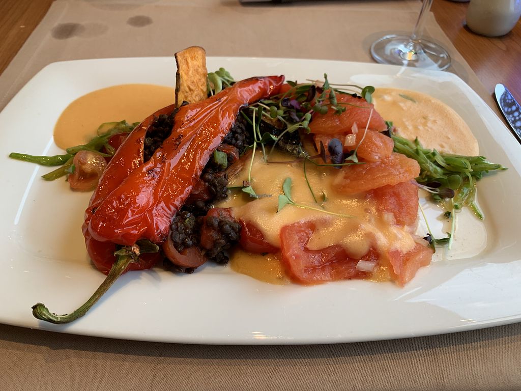 Leider konnte uns die Bedienung trotz Anruf am Vortag mit Nachfrage nach vegan, nicht mitteilen welches Gericht vegan sei. Aus der Karte war keins vegan, ein Tagesgericht (Pilze mit Salat stellte sich als vegan raus) wurde aber ohne Dressing und mit Butter serviert dazu gab es leckeres Brot. Würde also nicht nicht noch mal hin gehen. Sie waren sehr überfordert damit, obwohl sie ja auf der Seite mit vegan werben und der Koch auch meinte es geht klar. Er hatte dann auch noch mal auf Nachfrage ein Gericht vorgeschlagen (extra zu kochen), was ja schon nett ist. Aber man hat sich dann wie ein Verbrecher gefühlt? Personal war aber sehr nett und will das Restaurant hier nicht runter machen! Für Vegetarier wäre es sicherlich gut! Und es gibt hier ja sonst nicht viel wo man essen gehen kann.