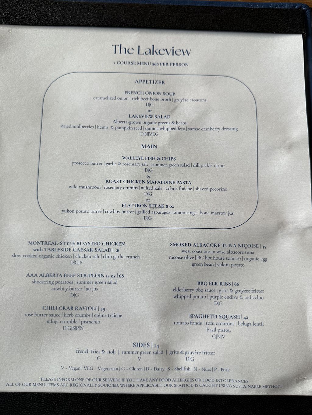 Vegan menu