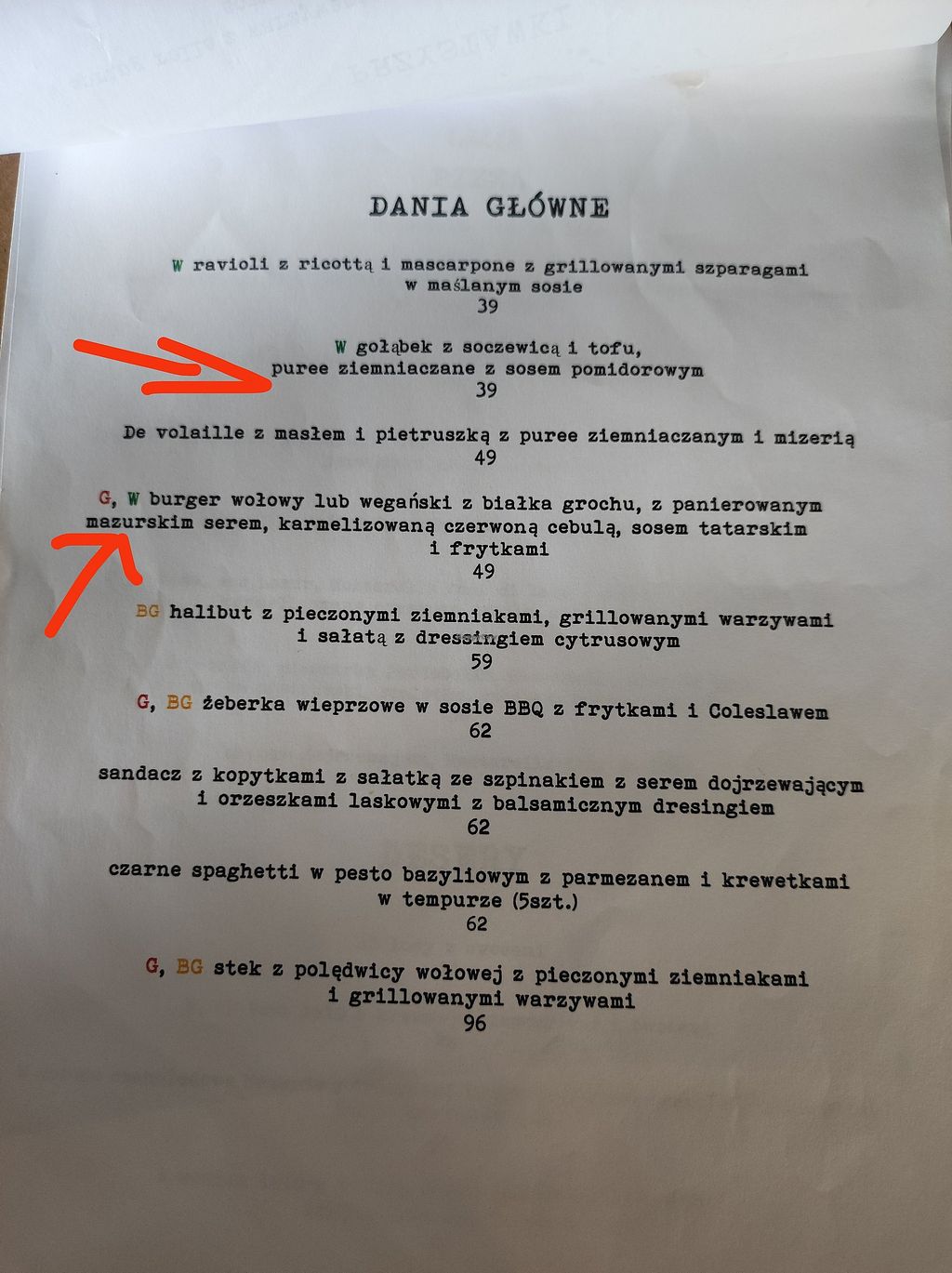 dwa dania wegetariańskie do wyboru (nieopisane na menu)