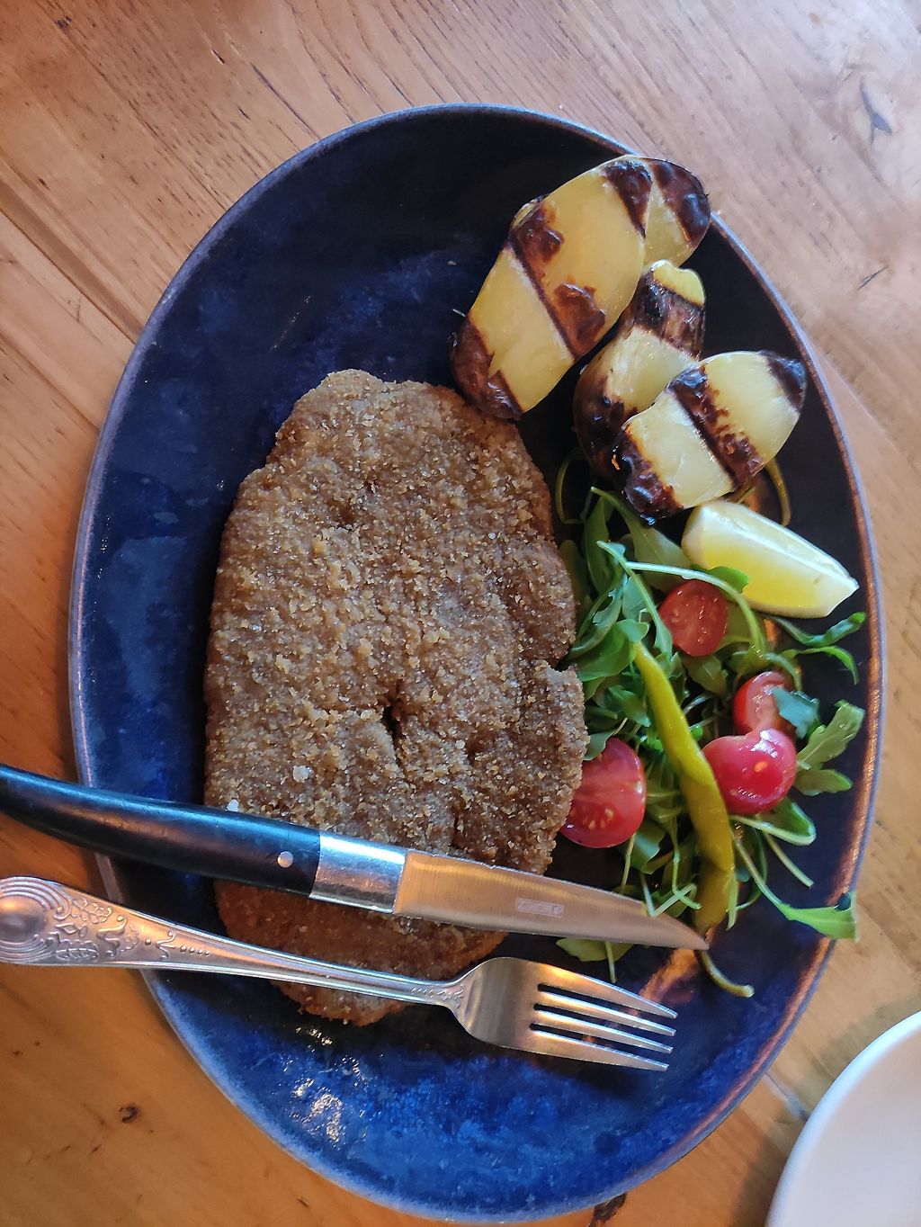Vegan burger with baked potato.