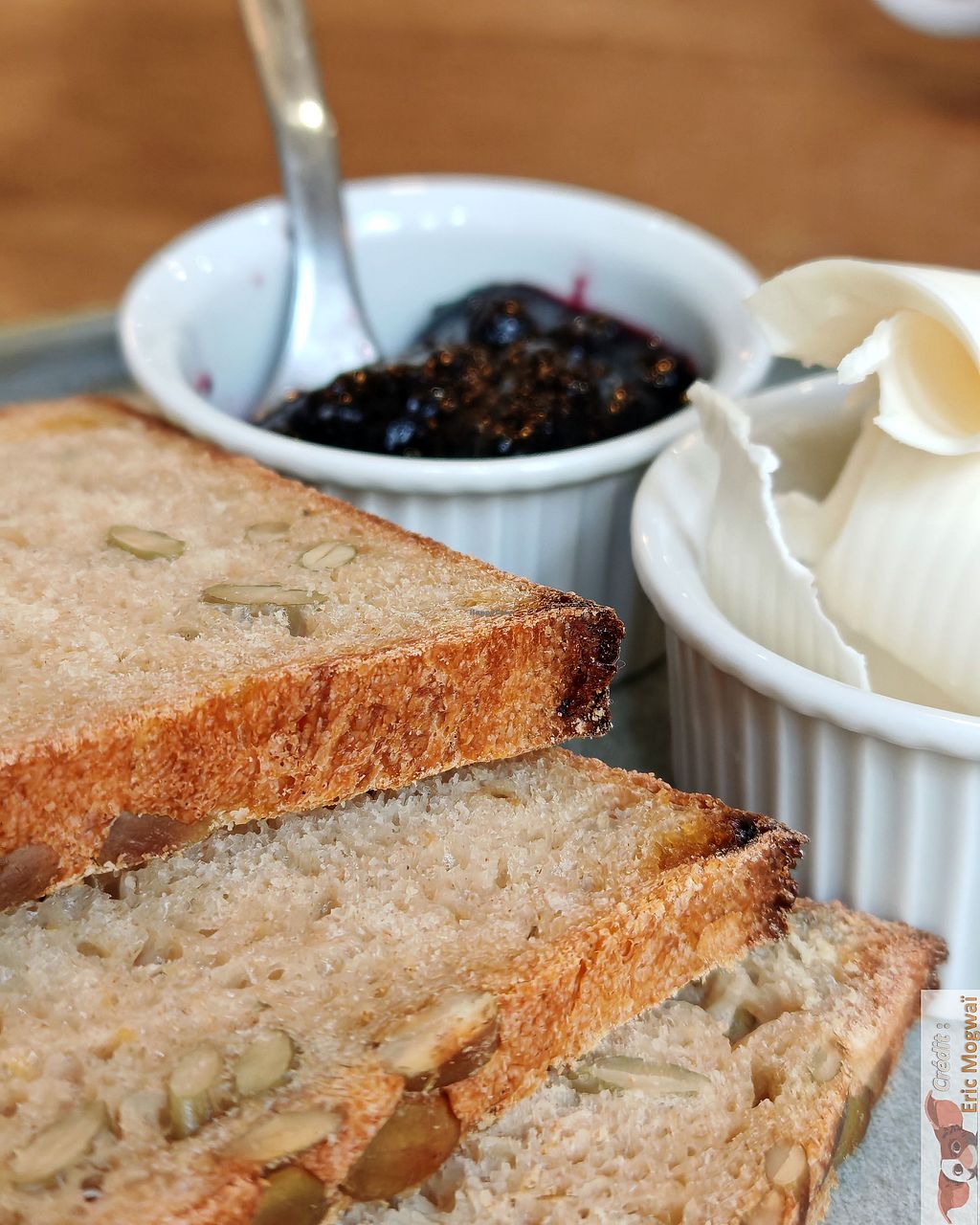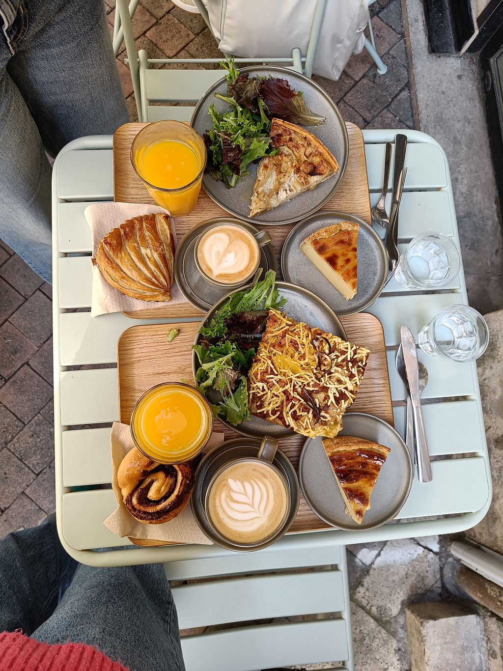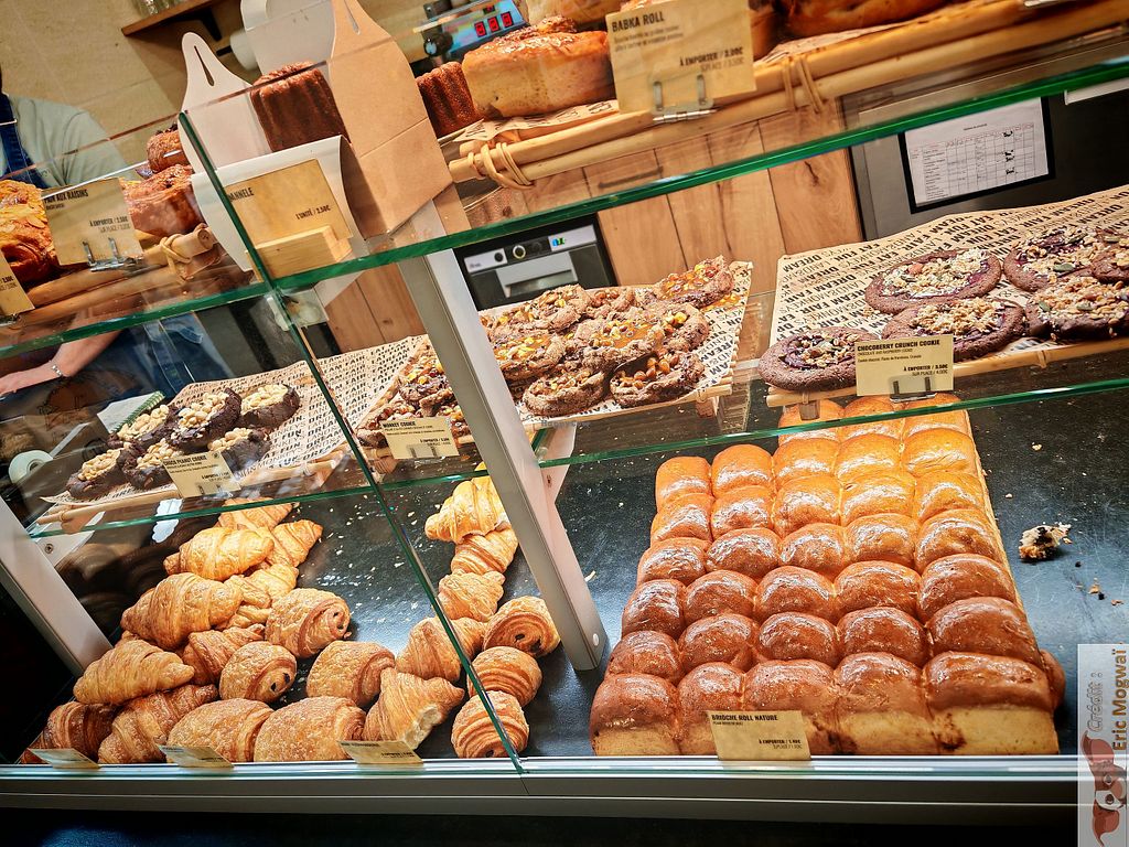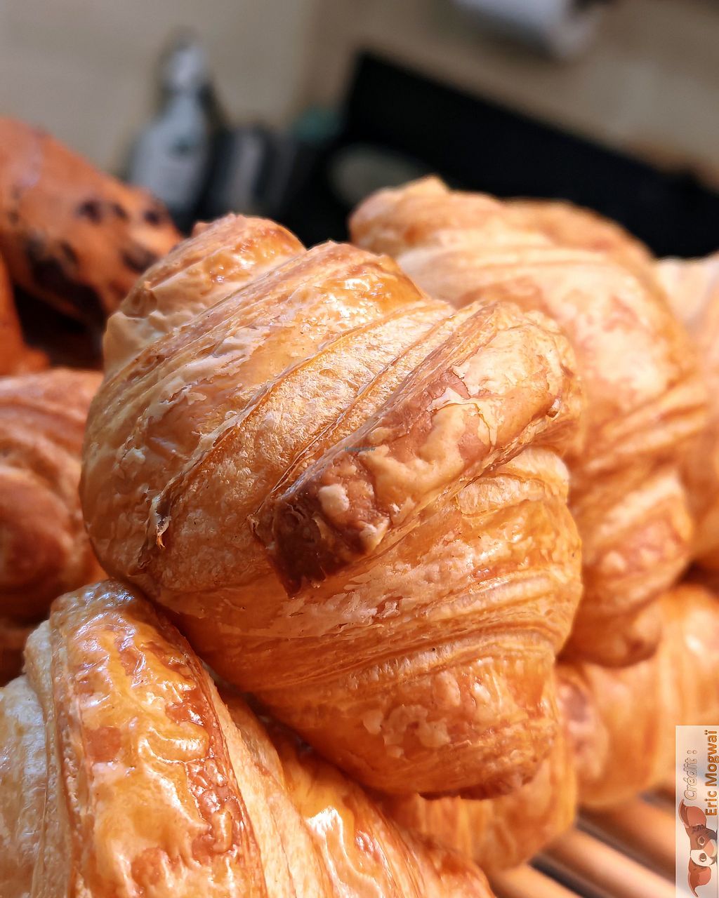 Chocolatine (pain au chocolate) aux amandes, du café et de la Focaccia
