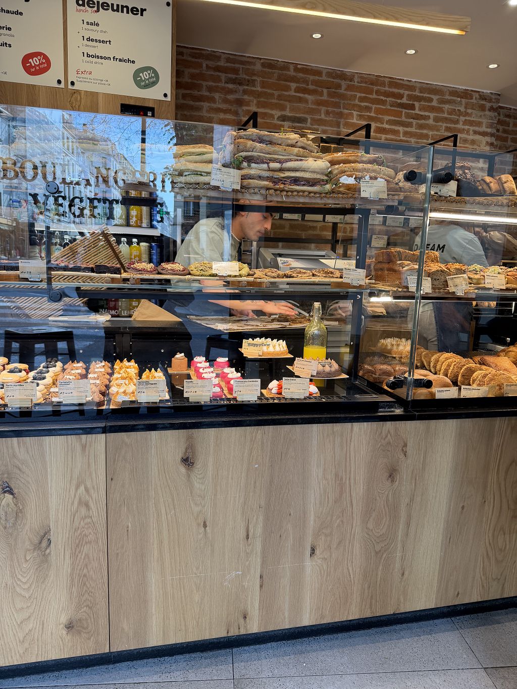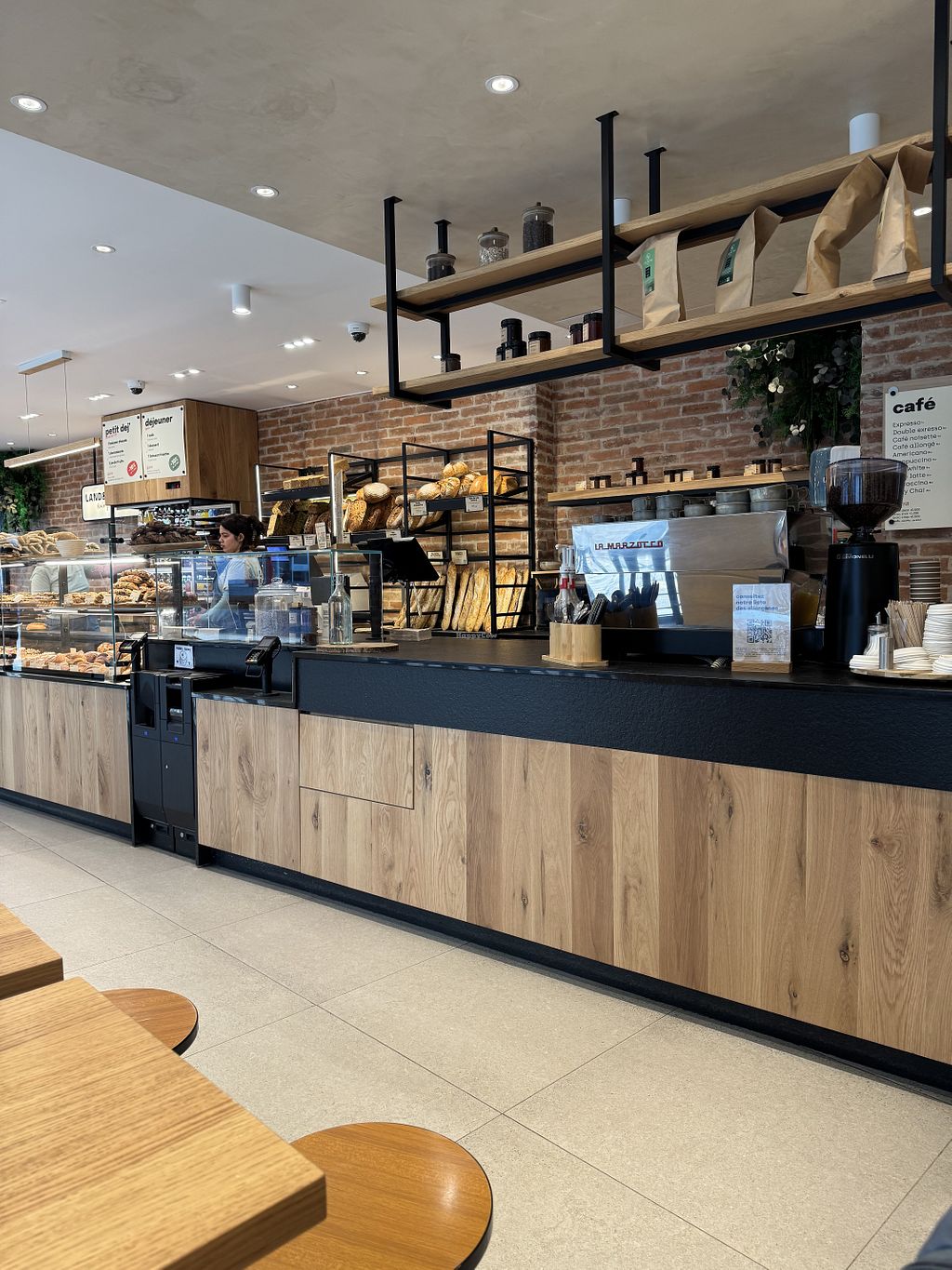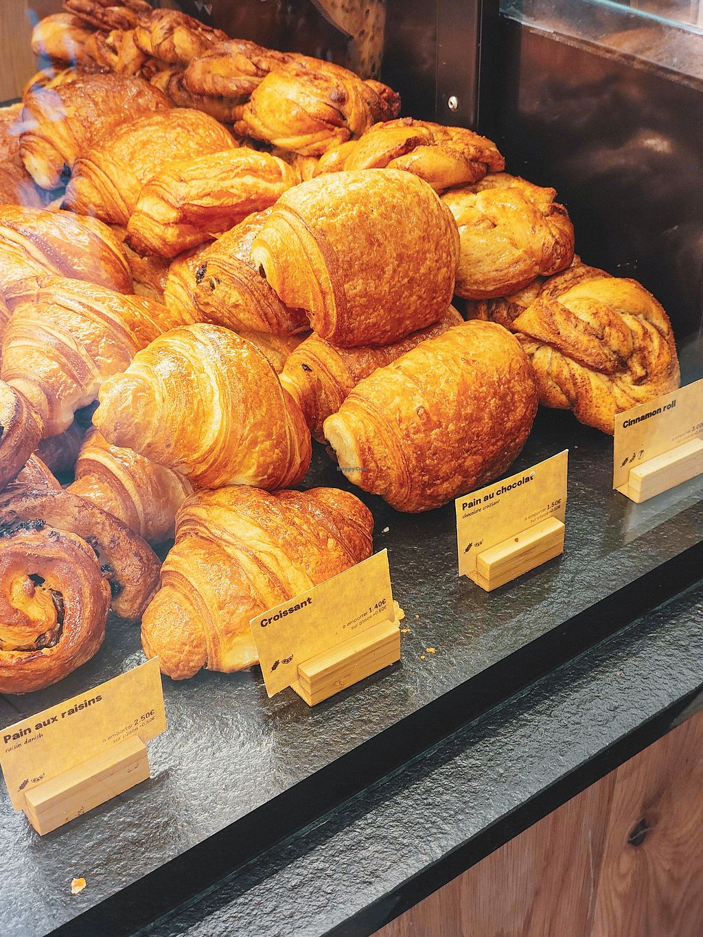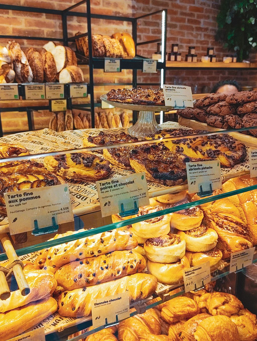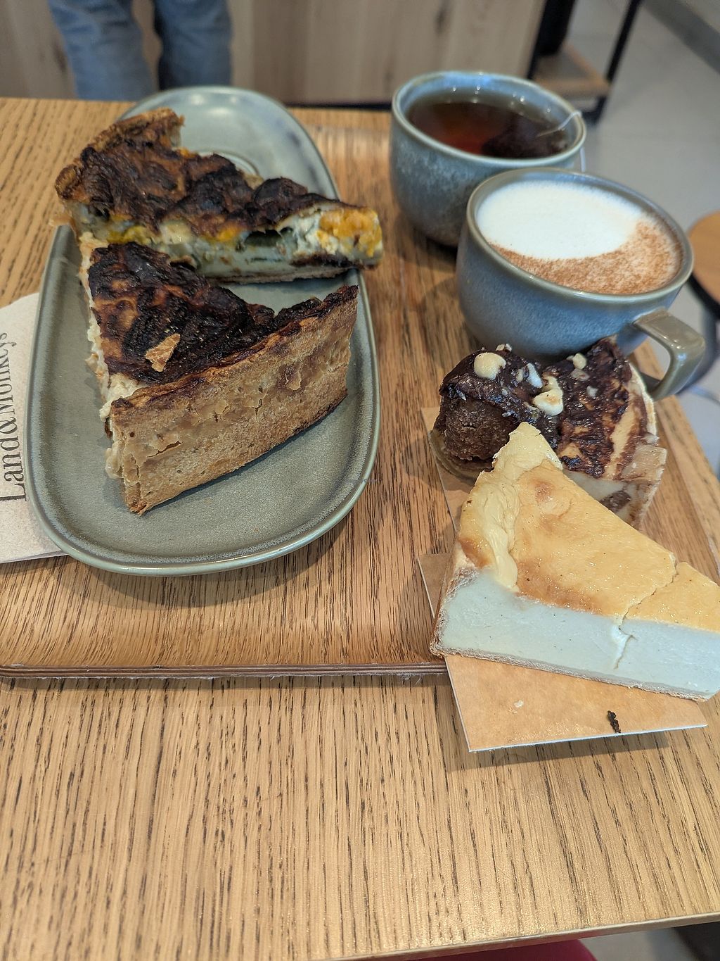 Matcha latte with a croissant and pain chocolat