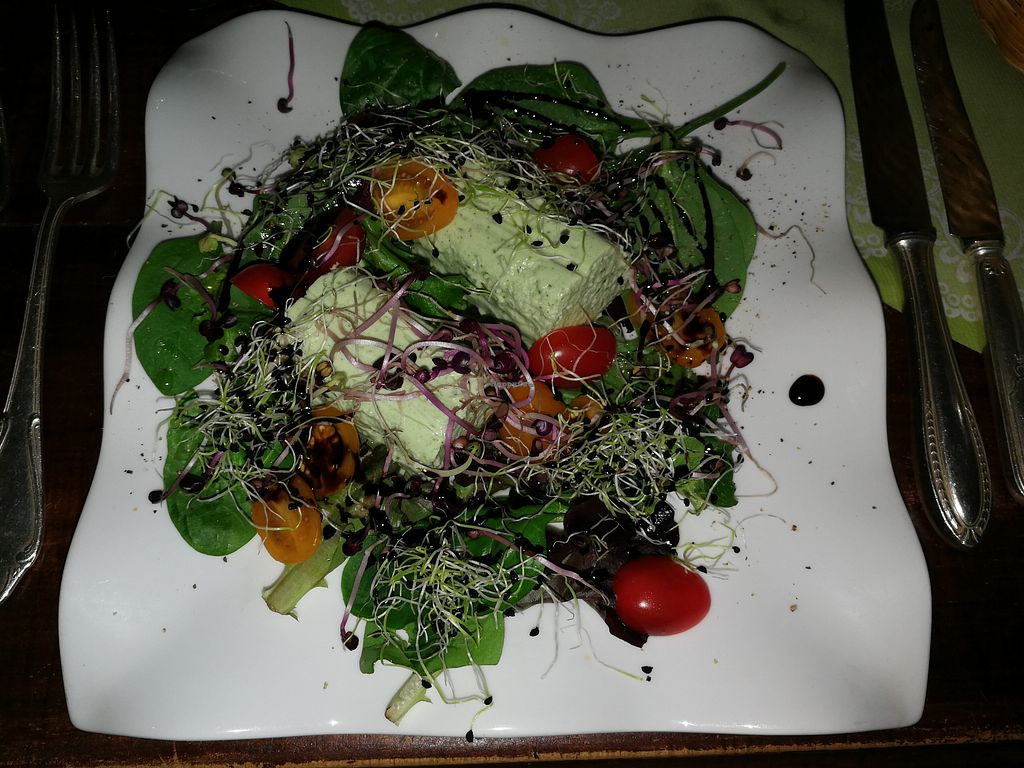 Ausgefallene, besondere vegane Speisen und nette Gastgeber.