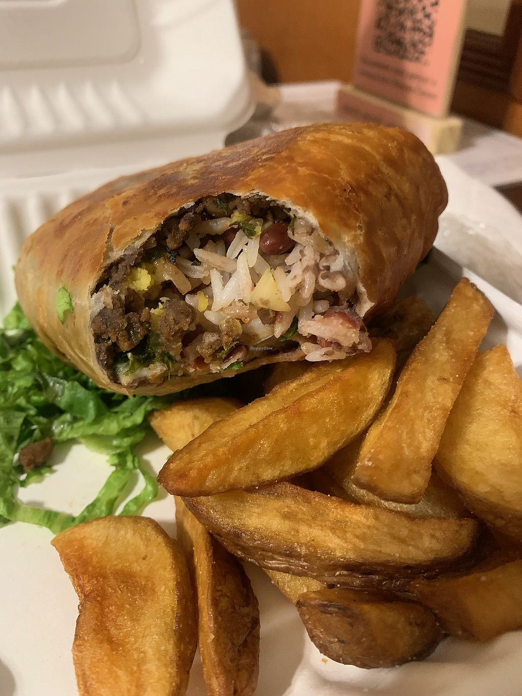 lots of vegan options but the burrito was a bit too oily and the fries tasted slightly off. also no vegan desserts were available. but the staff were super friendly