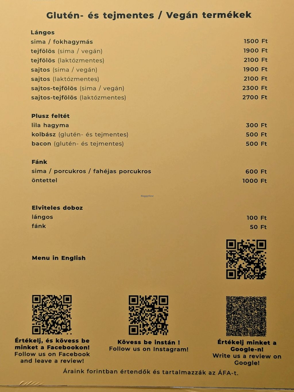 Serves meat, vegan options available. Food truck located in Budapest Garden offering vegan versions of traditional Hungarian lángos, including gluten-free options. Vegan toppings include garlic, sour cream, cheese, and sausage. Also serves vegan doughnuts with various toppings. Open Mon 12:00-22:00, Tue 04:00-10:00, Wed-Sat 16:00-22:00, Sun 14:00-22:00. Closed Mon.