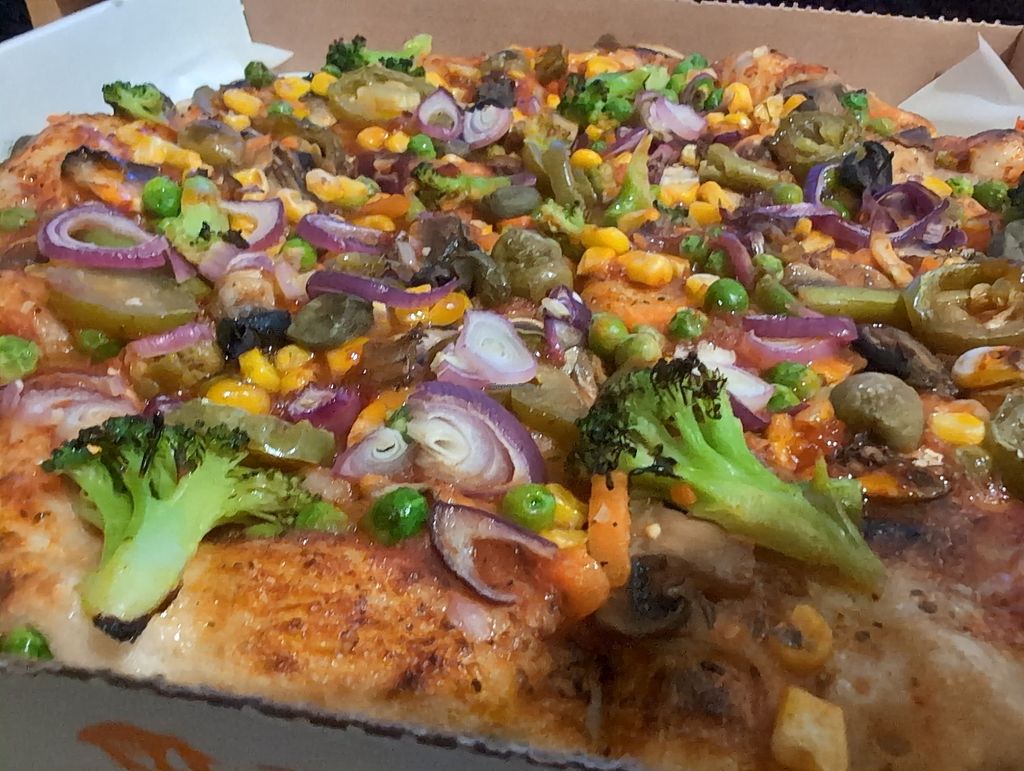 Serves meat, vegan options available. Pizza takeaway offering a vegan pizza with no cheese, Belgium fries and vegan garlic bread. Open Mon-Sun 18:00-21:00.