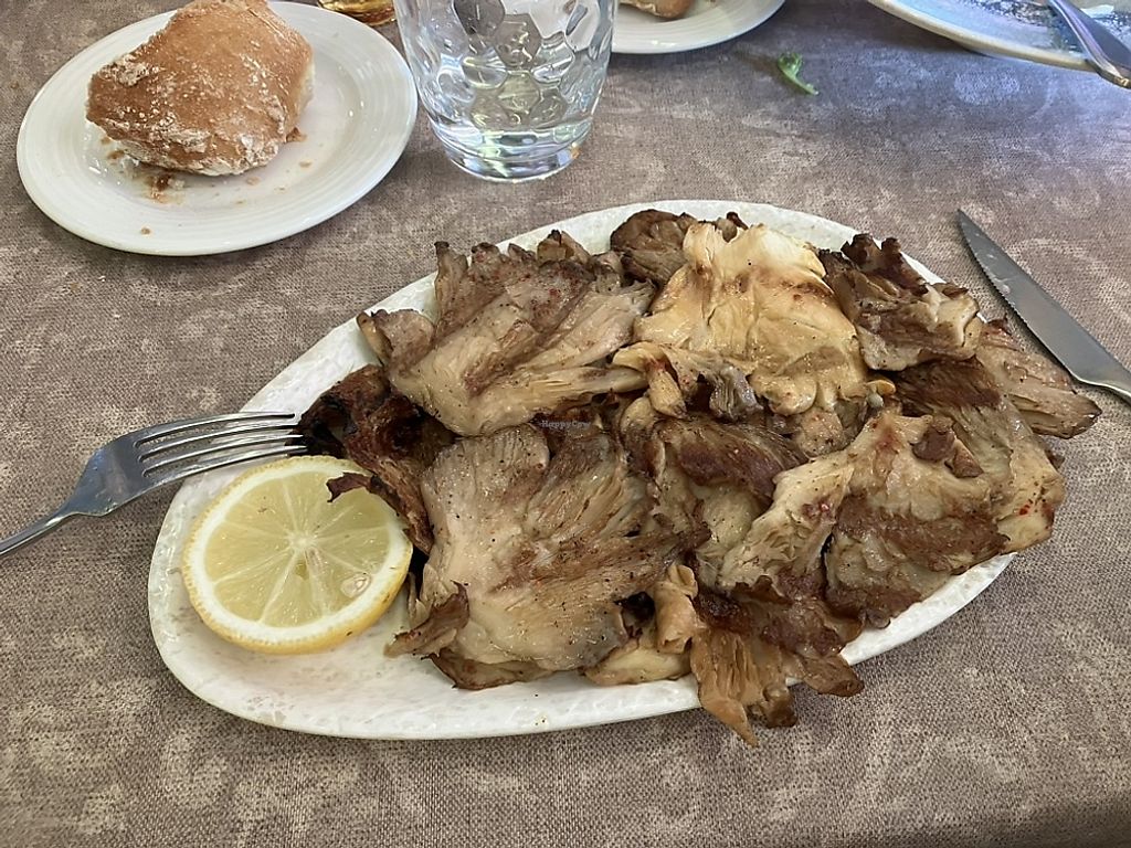 Fui a comer allí y la única opción vegana fue parrillada de setas. Para un lugar que se dice especializado en setas, me esperaba al menos variedad y setas ricas. Pero resulta que la parrillada de setas es un plato de setas ostra a la plancha. Ni una patata, ni una salsa ni nada.