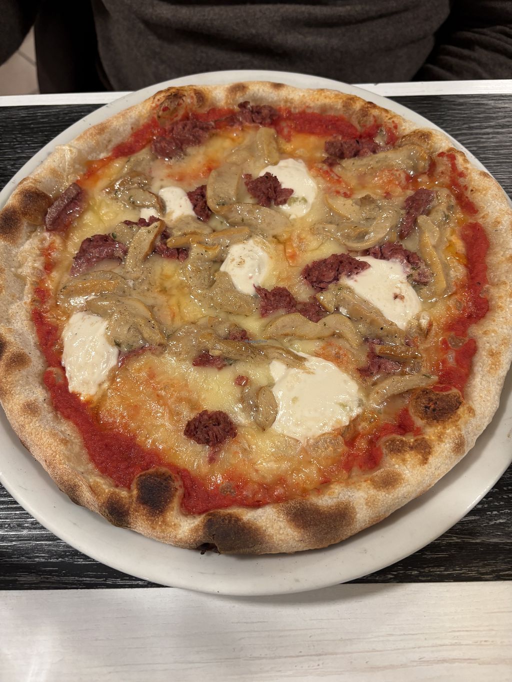 gorgonzola vegano, mozzarella vegana, funghi porcini e affettato vegan…