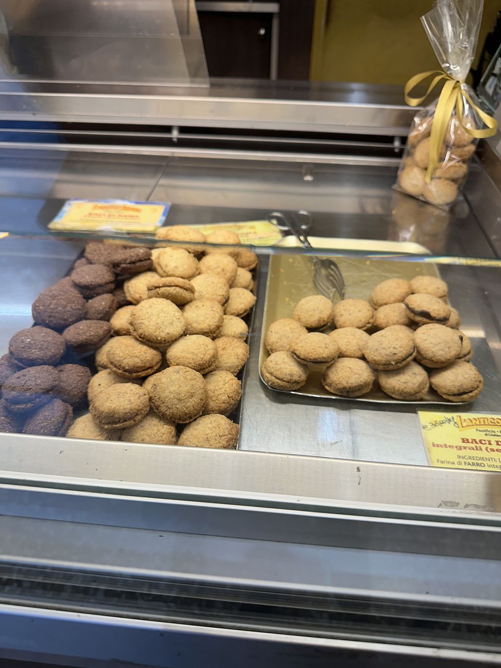 Read moreOggi avevano 4 tipi diversi di baci di dama, torte, crostatine e crostate e dei buonissimi dolcetti di pasta di mandorle.