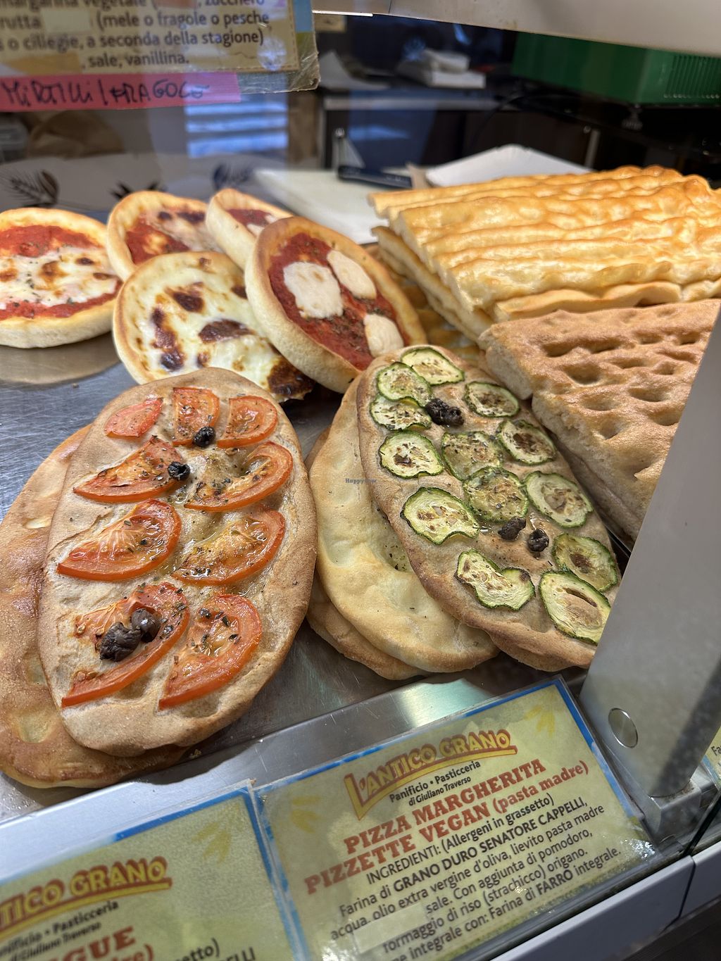 Quasi unica Bakery in Rapallo dove si trovano così tante opzioni vegane, oltre a focaccia e pizza anche torte salate ogni giorno diverse.