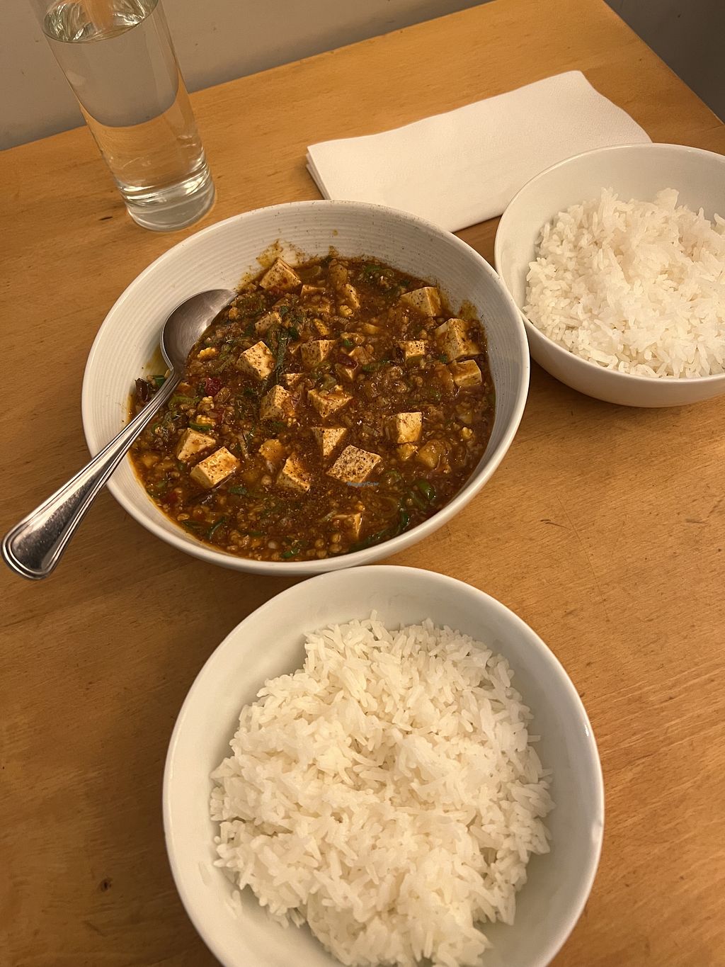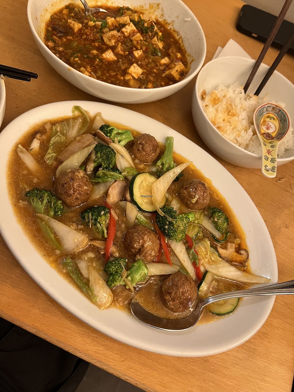 Went on a Monday evening around 8:40 and asked if they were still serving since the restaurant was empty and there’s a sign on the door saying the last order is at 9 (they close at 10). Waitress was nice and let us in but we could hear the kitchen staff yell “last order is right now!” I understand their feelings and frustrations because I also work at a restaurant but that did made me feel a bit unwelcome. I must again say the waitress was nice but we felt we had to rush to order. We ended up getting the mapo tofu, which was delicious and I definitely recommend it. We were given 2 bowls of rice which I appreciated. Could have been a more generous portion though. We also ordered a dish with some vegetables and faux meatballs. I really liked the seasoning for the vegetables but the meatballs weren’t my favourite.