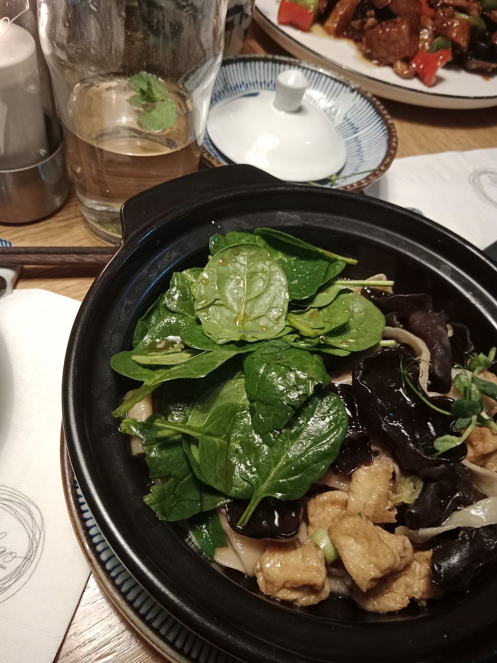 Biang Biang Shu Cai Mian (homemade noodles, tofu, mushrooms, baby spinā¦