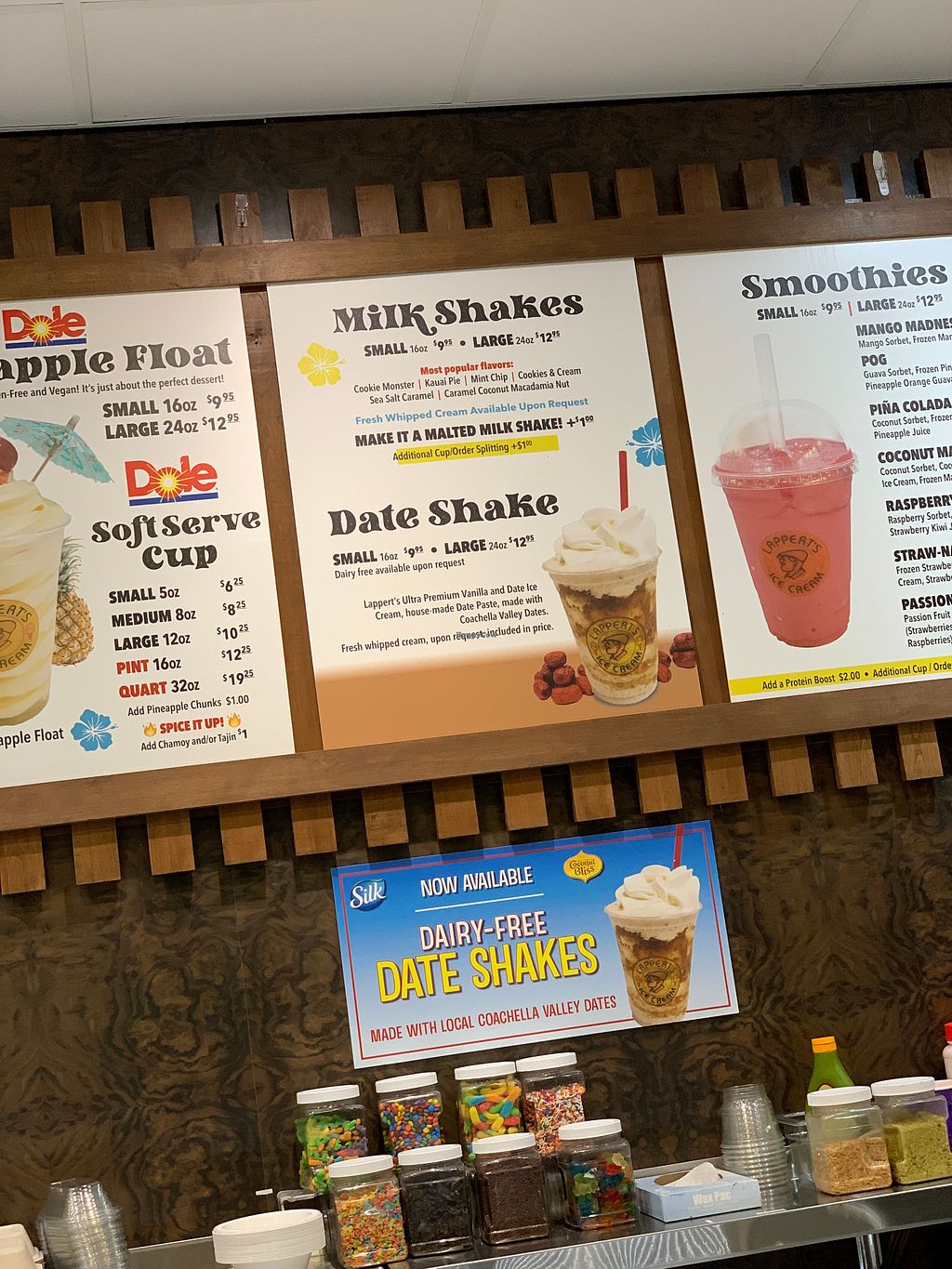 Ice cream shop offering some vegan ice cream flavors and a vegan date shake. Open Mon 11:00am-9:00pm, Tue-Fri 12:00pm-9:00pm, Sat 12:00pm-10:00pm, Sun 11:00am-10:00pm.