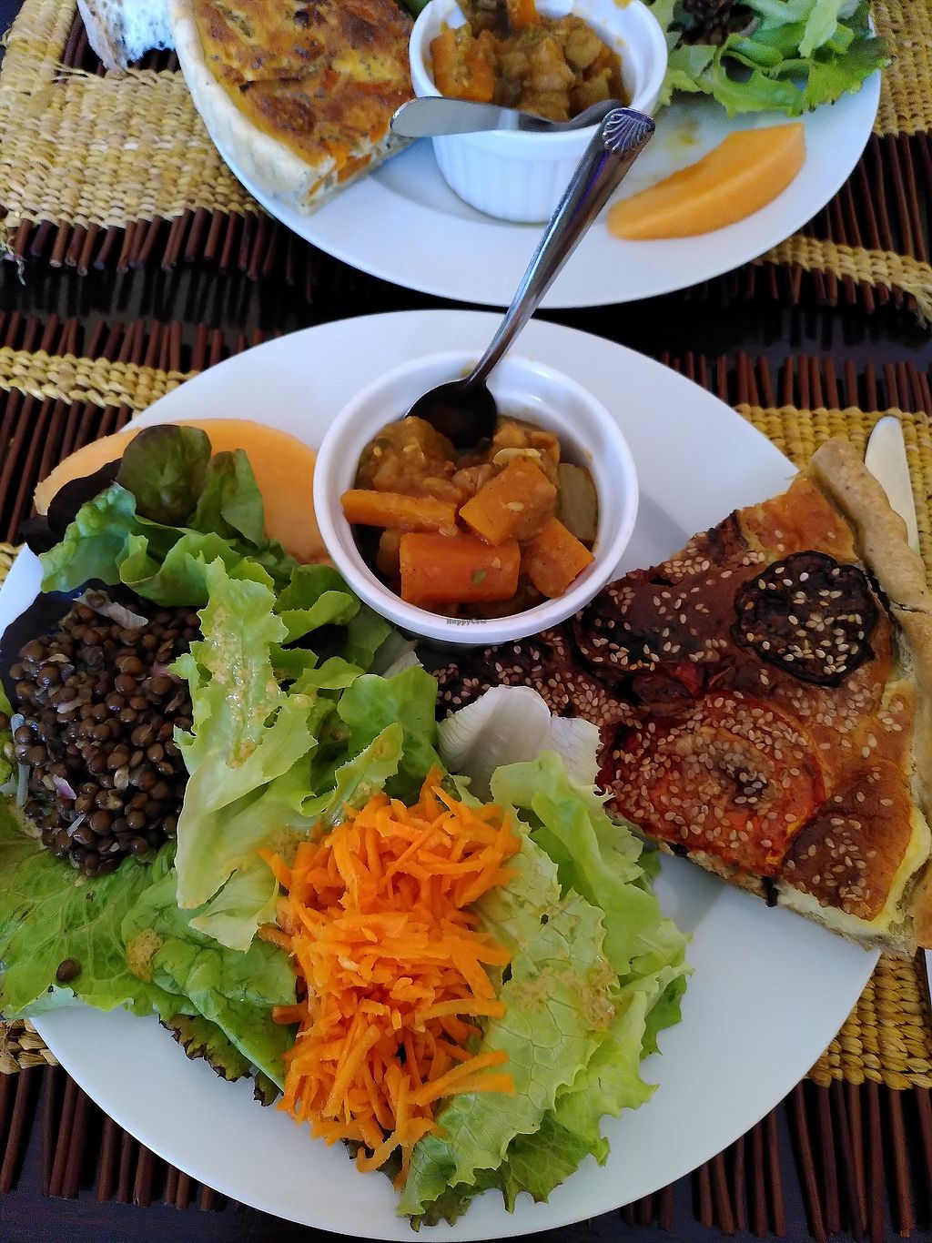 The lady who runs this restaurant is very friendly. It's a cozy place with a homey atmosphere. The menu is fixed: there's only one main dish wich consists of a salad; a piece of quiche (choose from two options, ours were fennel or eggplant) and either gazpacho or vegetable curry (again your choice). You also get bread and water on the table.