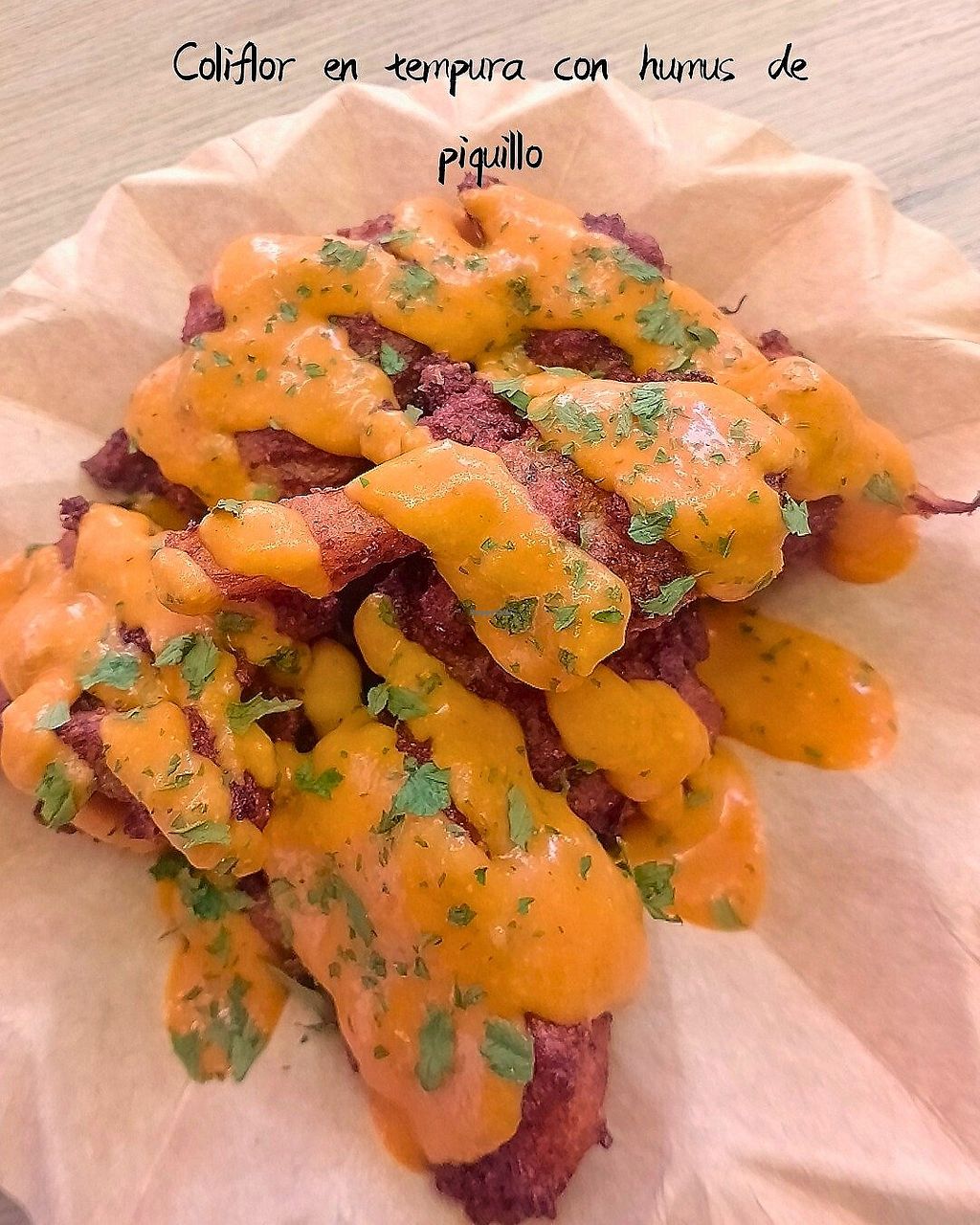Coliflor con salsa de humus de pimiento rojo