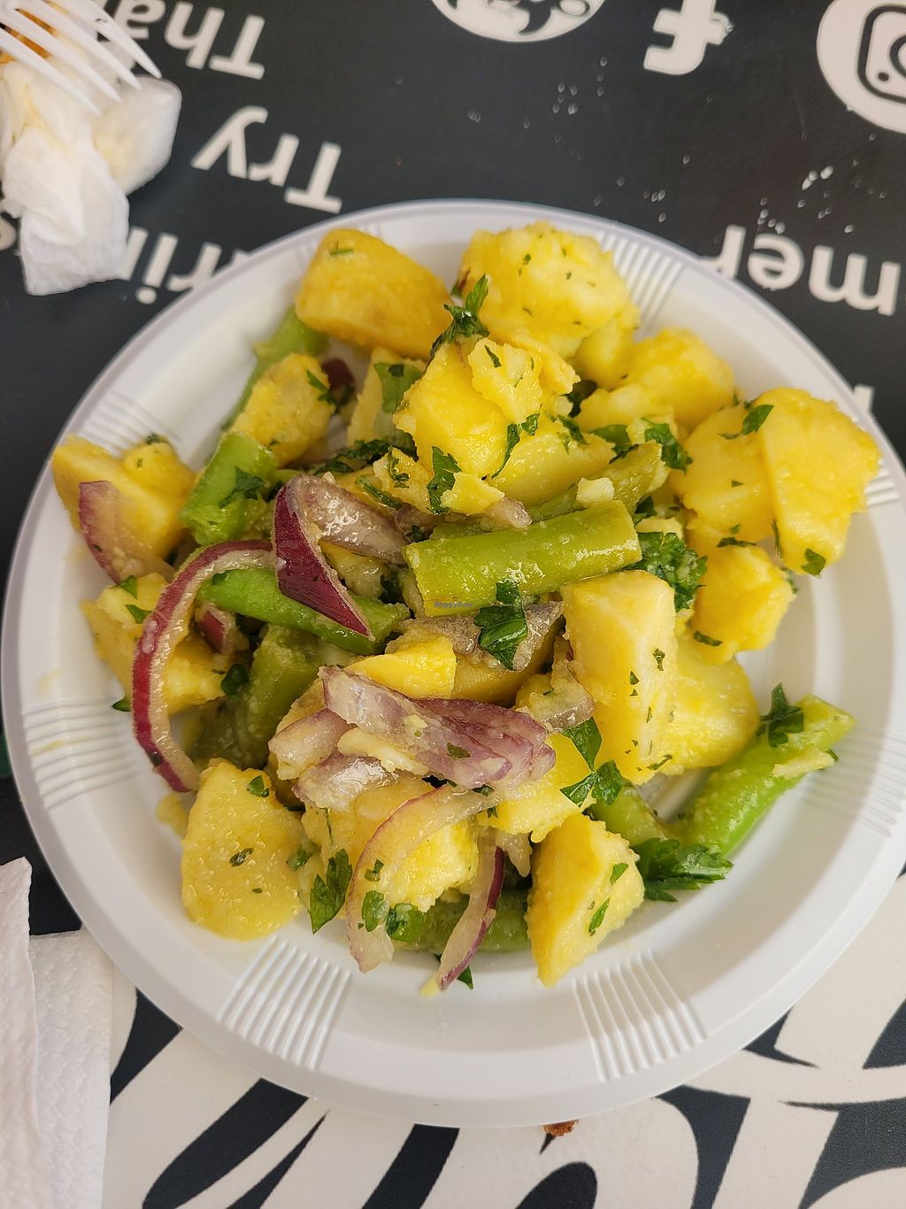 Kofta con salsa de hierbabuena, ensalada y patatas