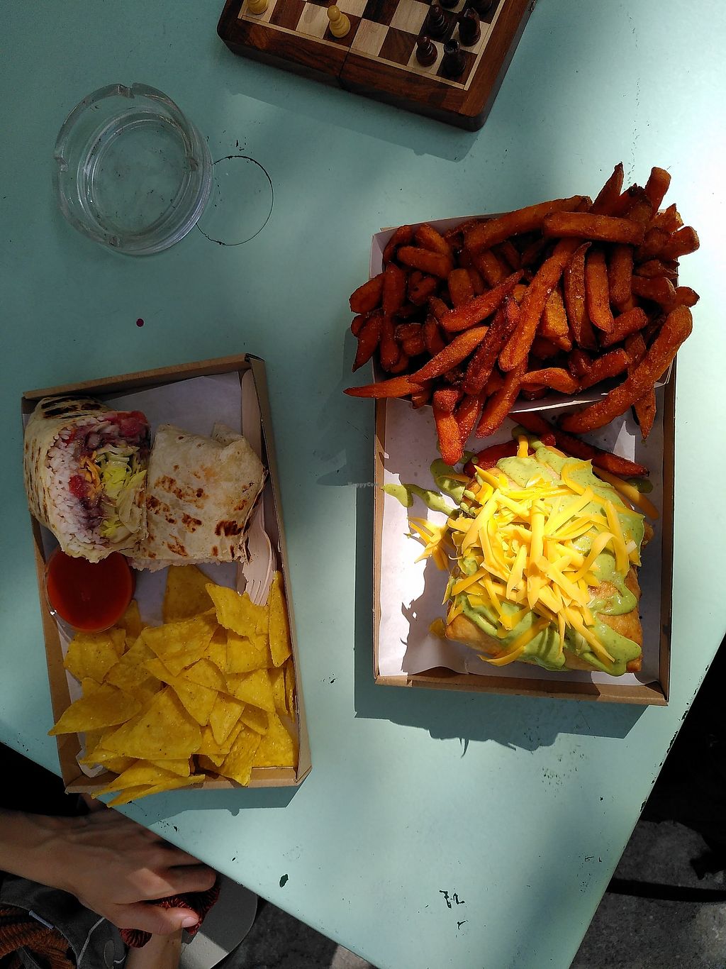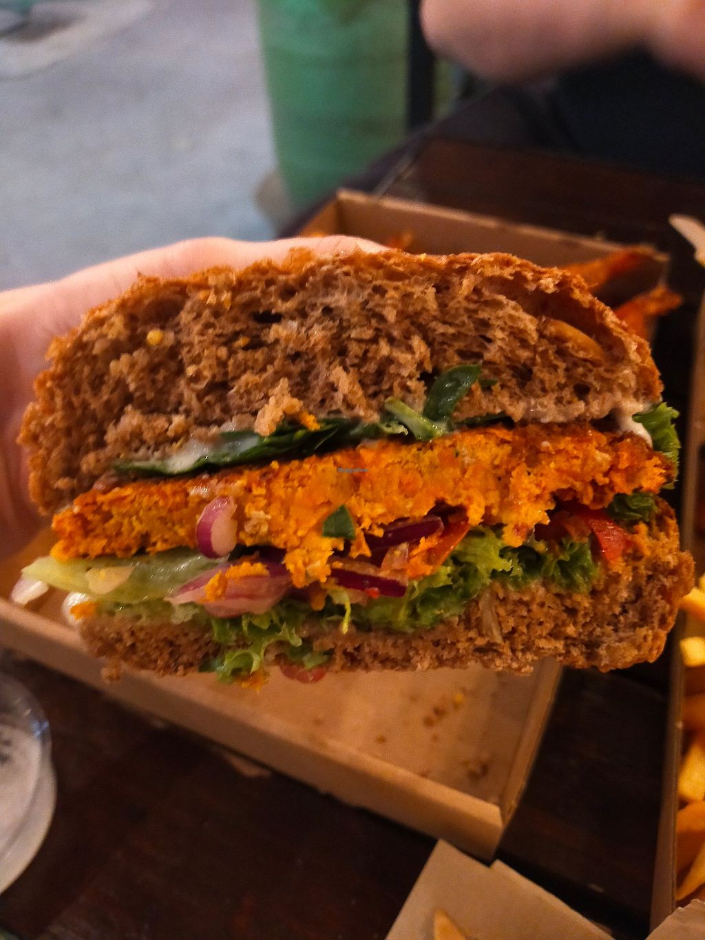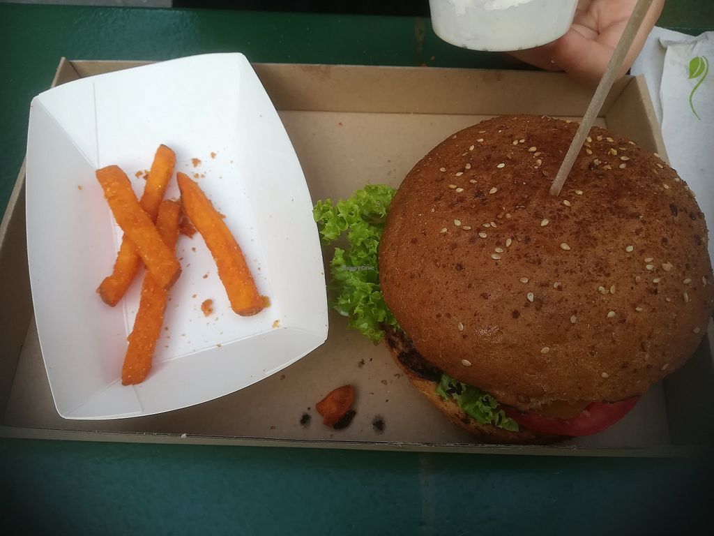 Sweet Dream burger with the remnants of the sweet potato fries that co…
