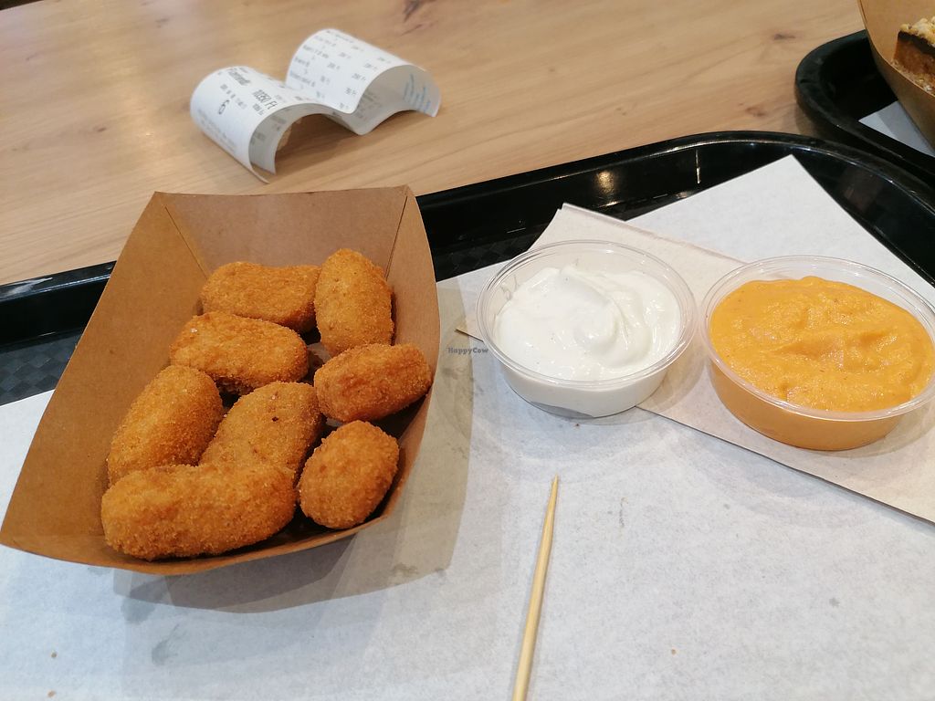 Fried cheese sandwich with sweet potato fries and BBQ sauce (~€12 incl…