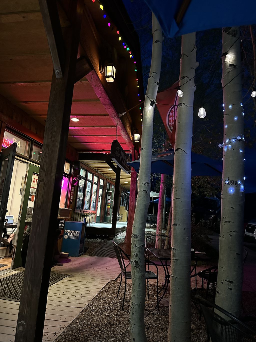 We have found a distinct lack of good vegan food whenever we visit Vail. So we were super happy to find this place on the way back to Denver. I hesitate to order vegan cheese normally because I don’t like the consistency, but several people mentioned it very favorably on Google. I had a Mediterranean pizza on gluten-free crust with vegan cheese, and it was delicious. It was a very loud and rambunctious trivia night when we were there, so we enjoyed the beautiful outside tables underneath the Aspen trees. Totally worth a visit. If you’re in the Vail Valley area and looking for some yummy Vegan pizza.