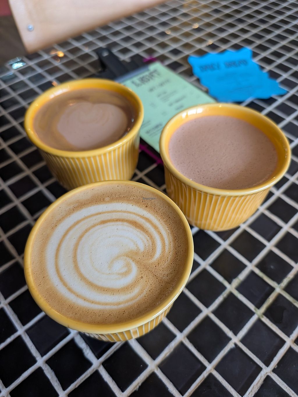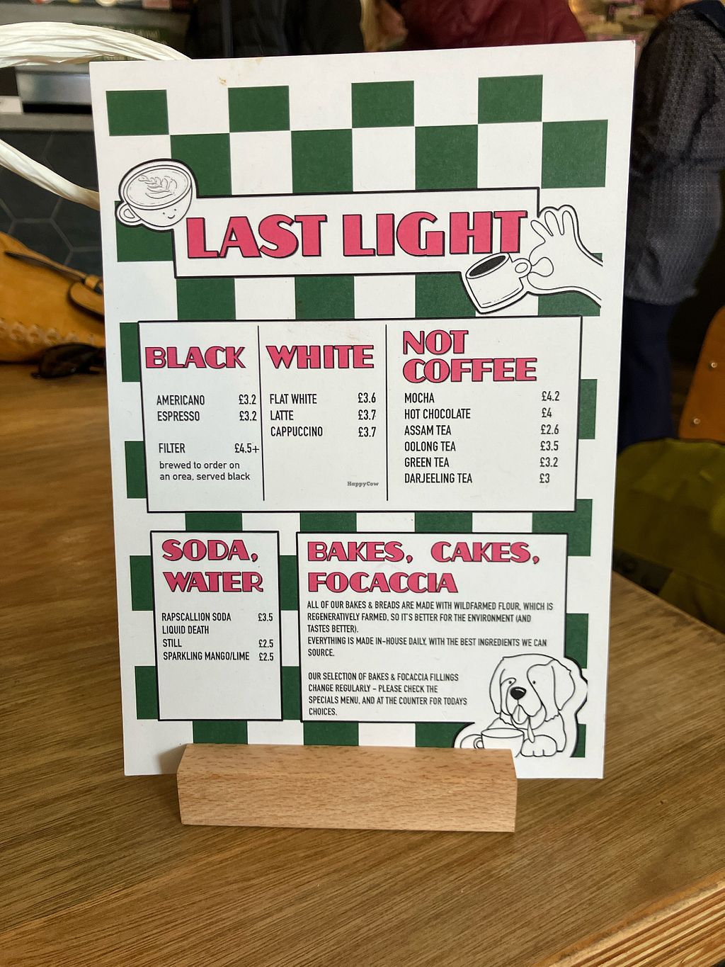 I was a bit grumpy because Blackpool was not the easiest place to find a vegan breakfast and was disappointed that they didn't have many options (one). I liked the coffee flight but we were too early for the lunch options and already planned to eat lunch later. We decided to go have vegan patties all round in the end because we were hungry and they were really nice.