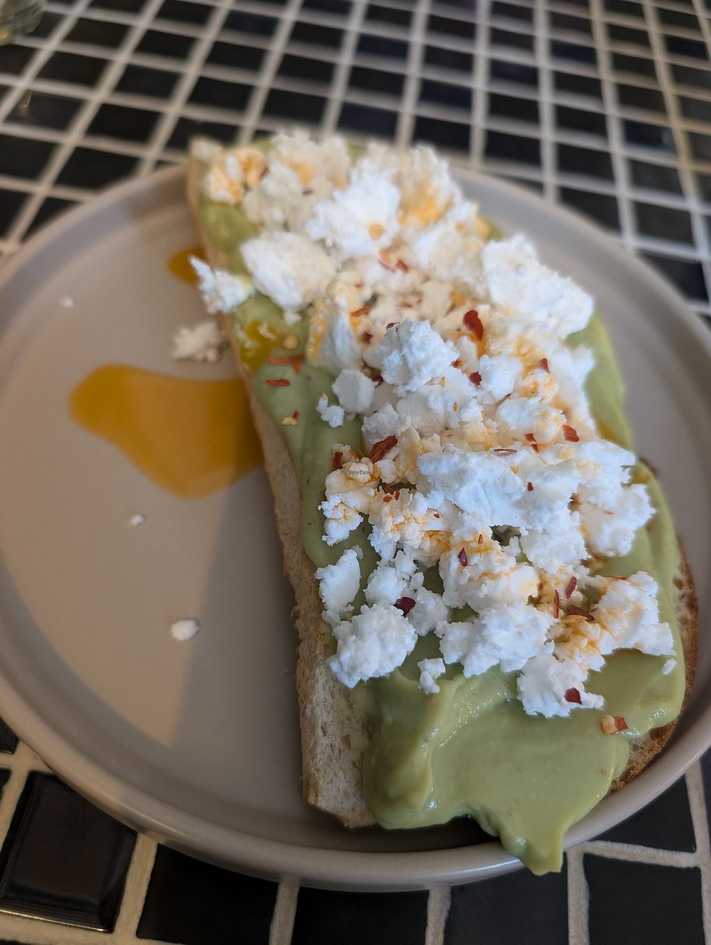 💭: when I say this was the best breakfast bun I’ve ever had… I am not lying (I am still craving one of these again). This was delicious and filling! It was a potato bun with a vegan sausage patty, sliced avocado, bloody mary tomato sauce, vegan cheese, and red onion.
