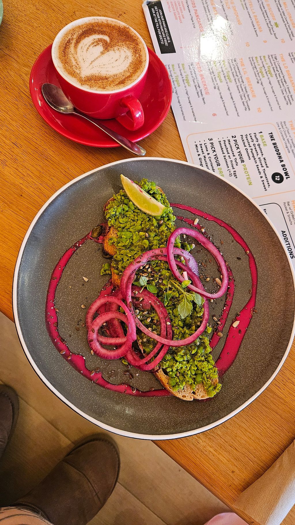 Great options on the menu including things on toast, Buddha bowls, vegan breakfasts, smoothies & a burger/bap. I went for ‘The peas’ which was beautifully presented and really tasty, smashed minty peas with pink onions & a beetroot & tahini sauce. I’ll be back to try out the rest of the menu!