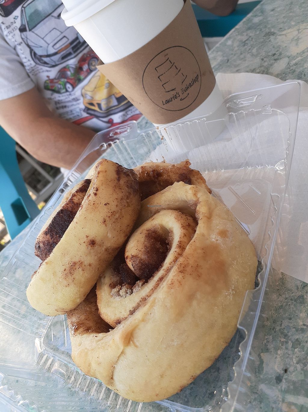 Vegan gluten-free chocolate torte and [huge] cinnamon bun