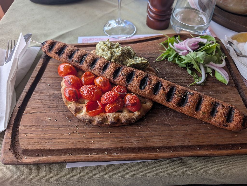 I’m not a fan of imitation meats, and I found the food here too contrived, rich, and unnecessarily artificial. There’s a ton of Greek food that is authentically (and deliciously) vegan. But this isn’t that.