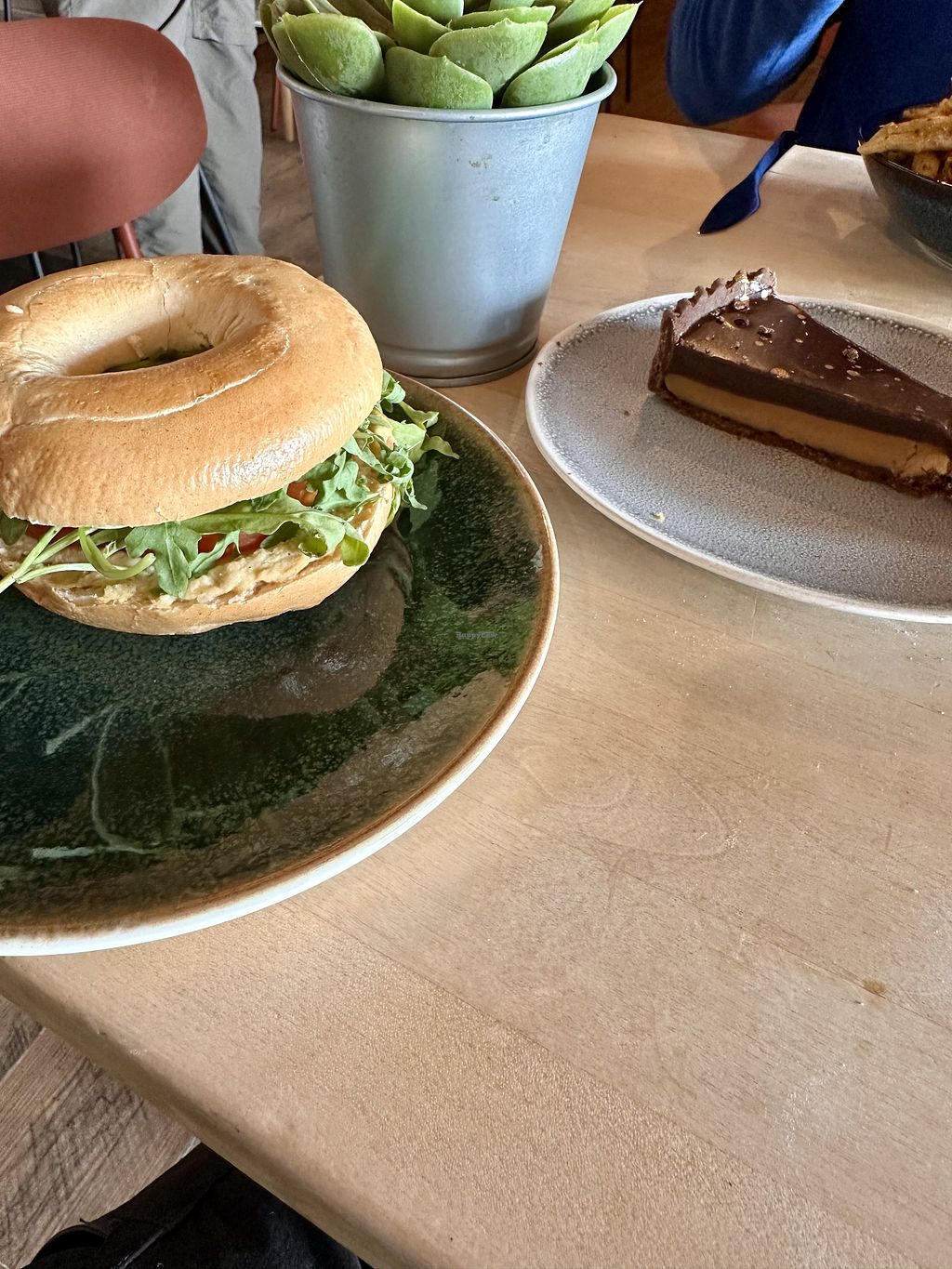 There was vegan (hummus and avocado) bagel available, only with a trillionaires cake. Reasonable food.