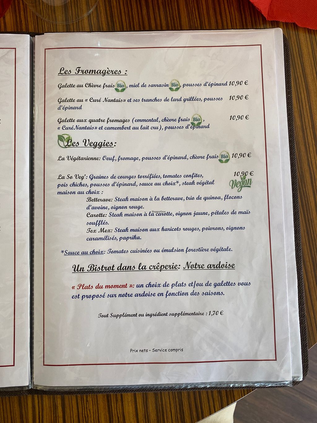 Une CrĂªperie proposant des galettes vegan, il fallait tester tellement c est rare cĂ´tĂ© Bretagne. J'ai pris la galette vĂ©gan, un rĂ©gal !