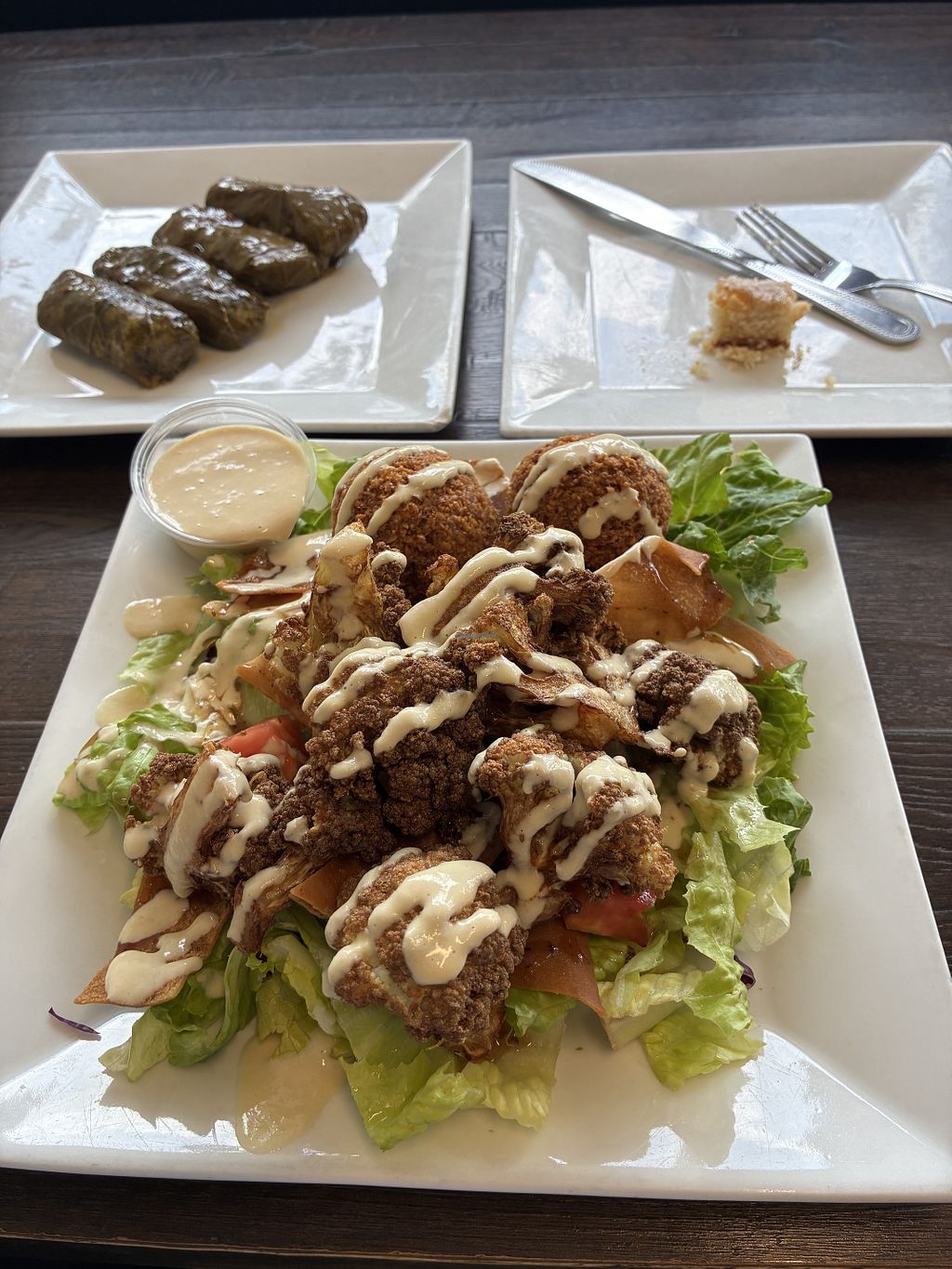 Super friendly staff. As with most Mediterranean options, vegans have a few options. Always a good experience when I go there. Serving sizes are good too!