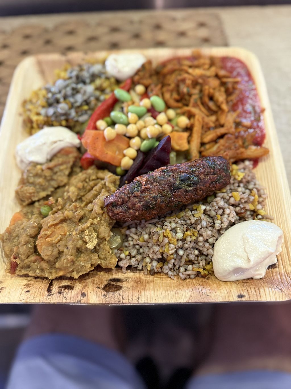 Vegan eatery serving dishes such as kubbeh, shawarma, majadera (rice with lentils), vegetable tarts, and other Middle Eastern dishes. Open Mon-Thu 9:00am-4:00pm, Sun 9:00am-4:00pm. Closed Fri and Sat.