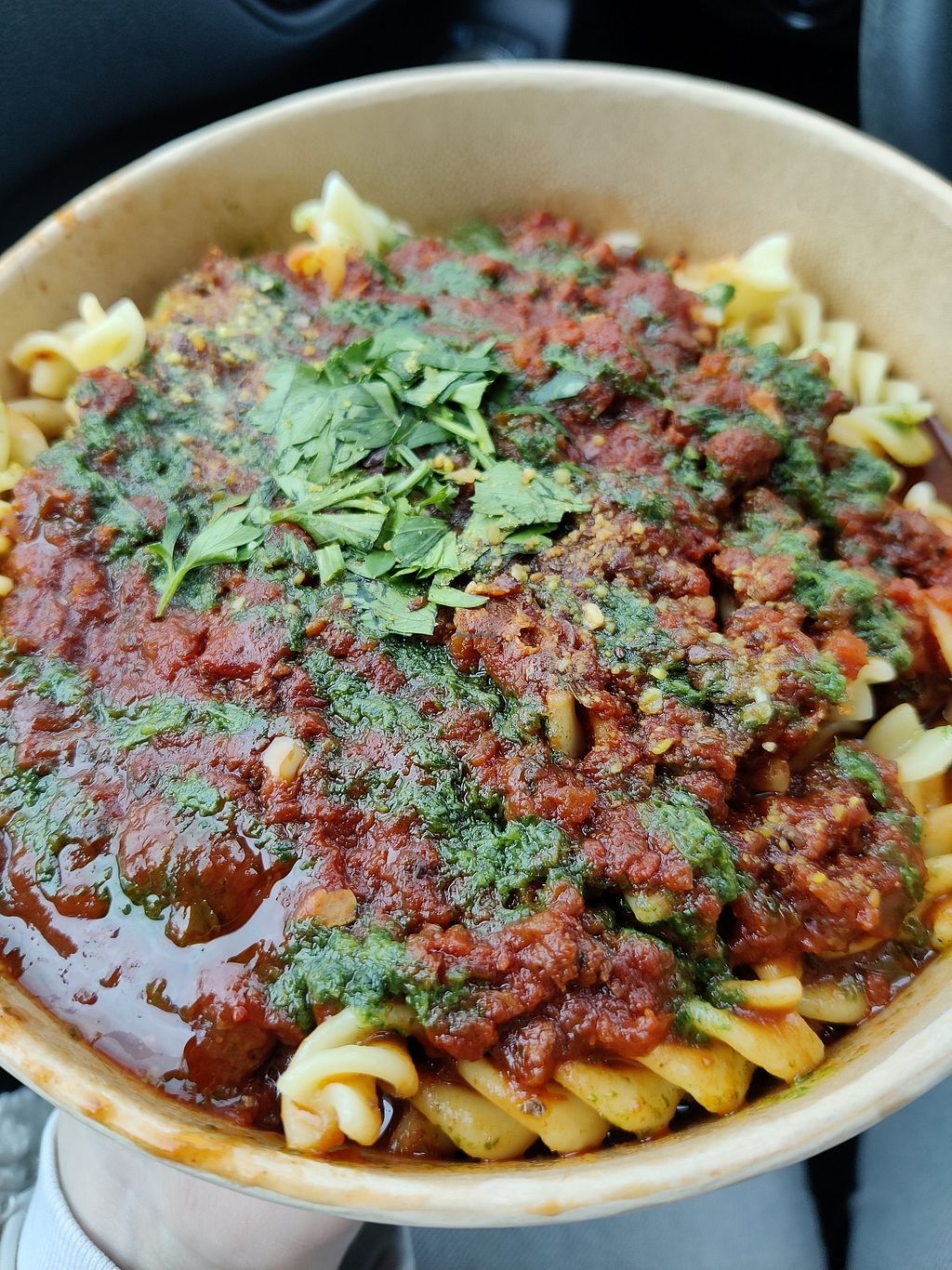 Bowl with potatoes, mushrooms gravy and sourkraut