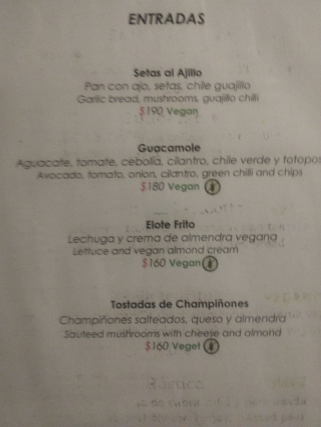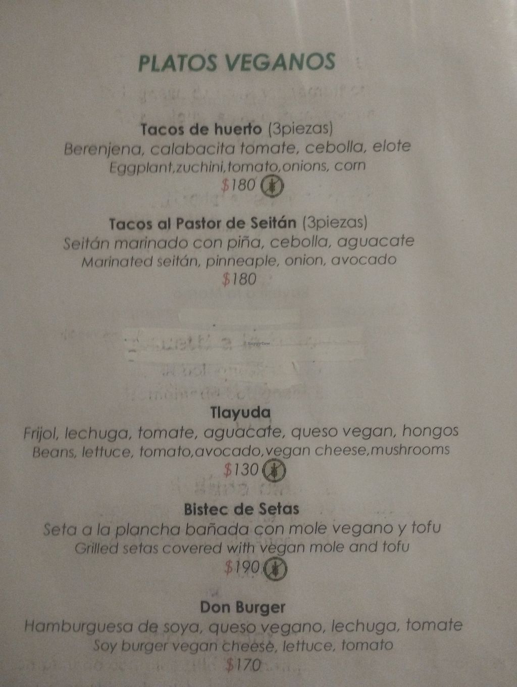 The menu is well marked with a number of vegan options. We had such a nice dinner we can back again! The guacamole is really good, the tlayuda was like a Mexican pizza and well seasoned and good portions, both tacos are good, and tamale with mole was also good. Nice atmosphere with excellent service!