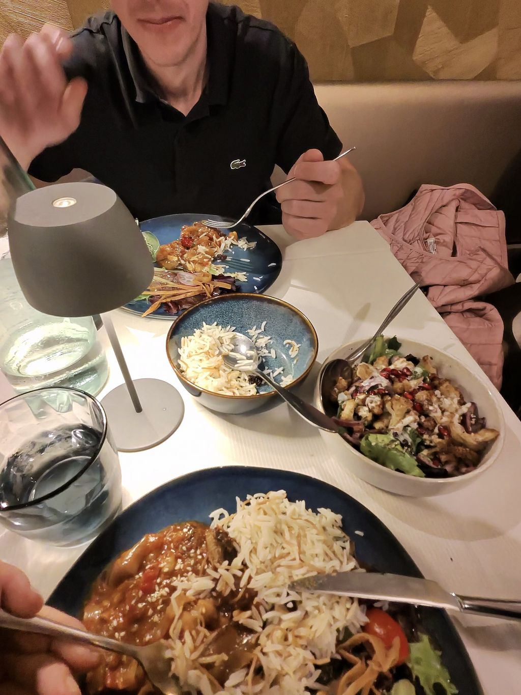 Serves meat, vegan options available. Lebanese restaurant that offers a vegan tasting menu, hummus, falafel, tabbouleh, baba ghanoush, okra in tomato sauce with rice, and roasted cauliflower. Open Mon-Thu 19:00-22:30, Fri-Sat 19:00-23:00. Closed Sun.